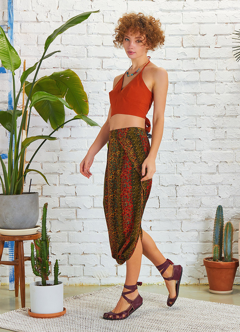Otantik Desenli Düşük Bel Etek Pantolon 5183