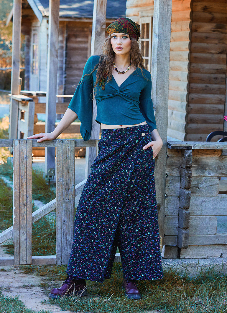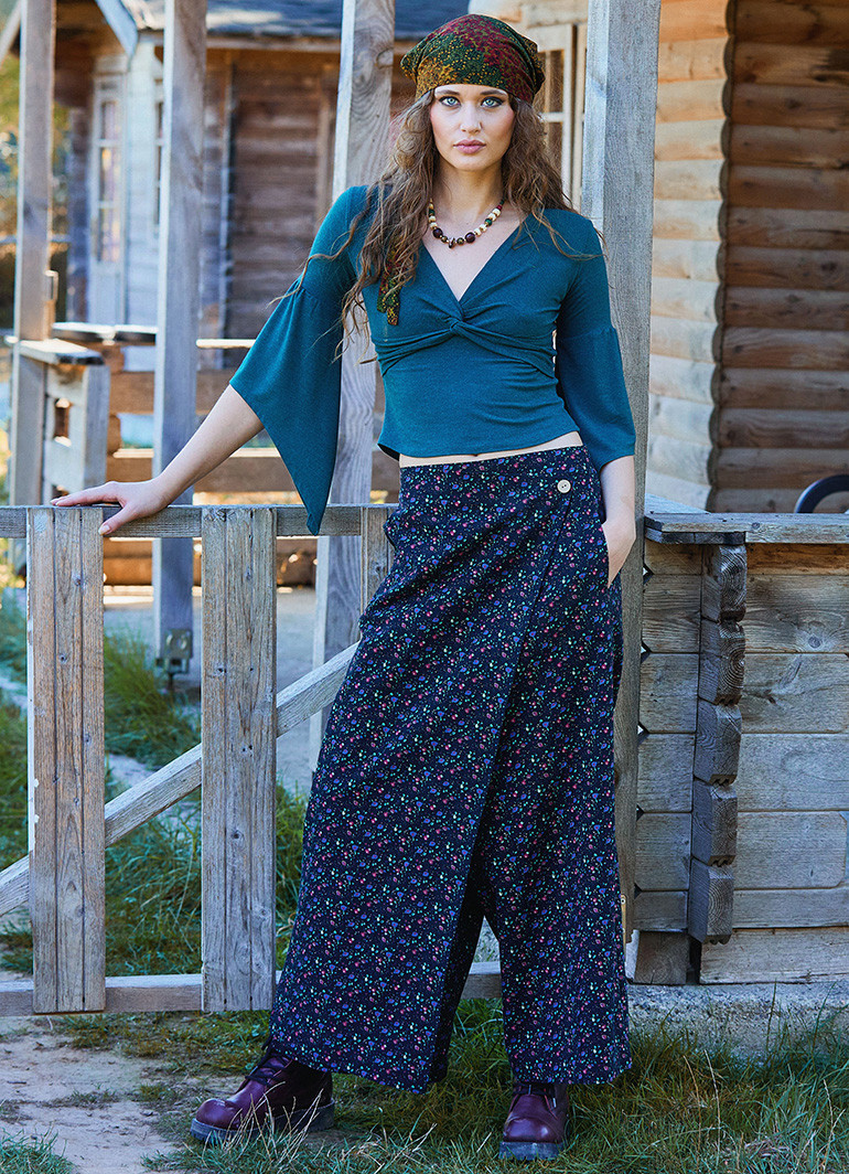Türkiye’de özenle üretilmiş olan bu şalvar, hem yaz hem de bahar aylarında hafif yapısıyla rahat bir kullanım sağlar. Özel asimetrik kesimi ve çiçek desenleri, bohem bir tarz yaratmak isteyen kadınlar için ideal bir seçimdir.