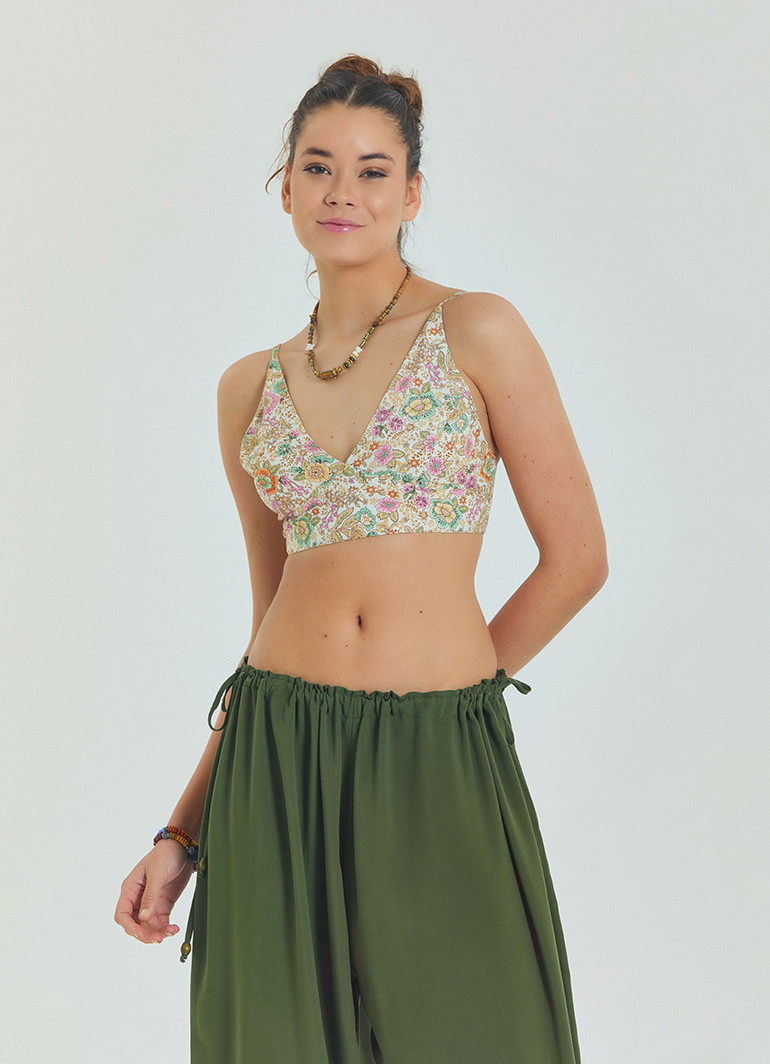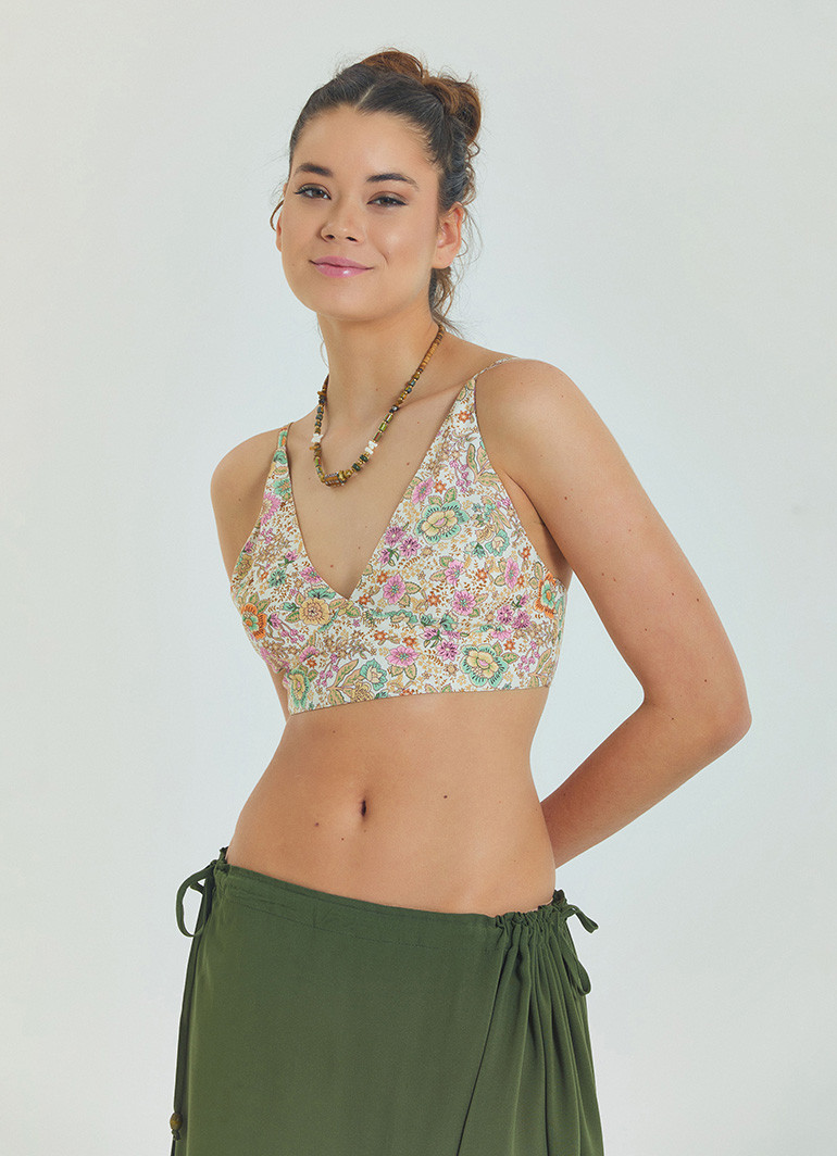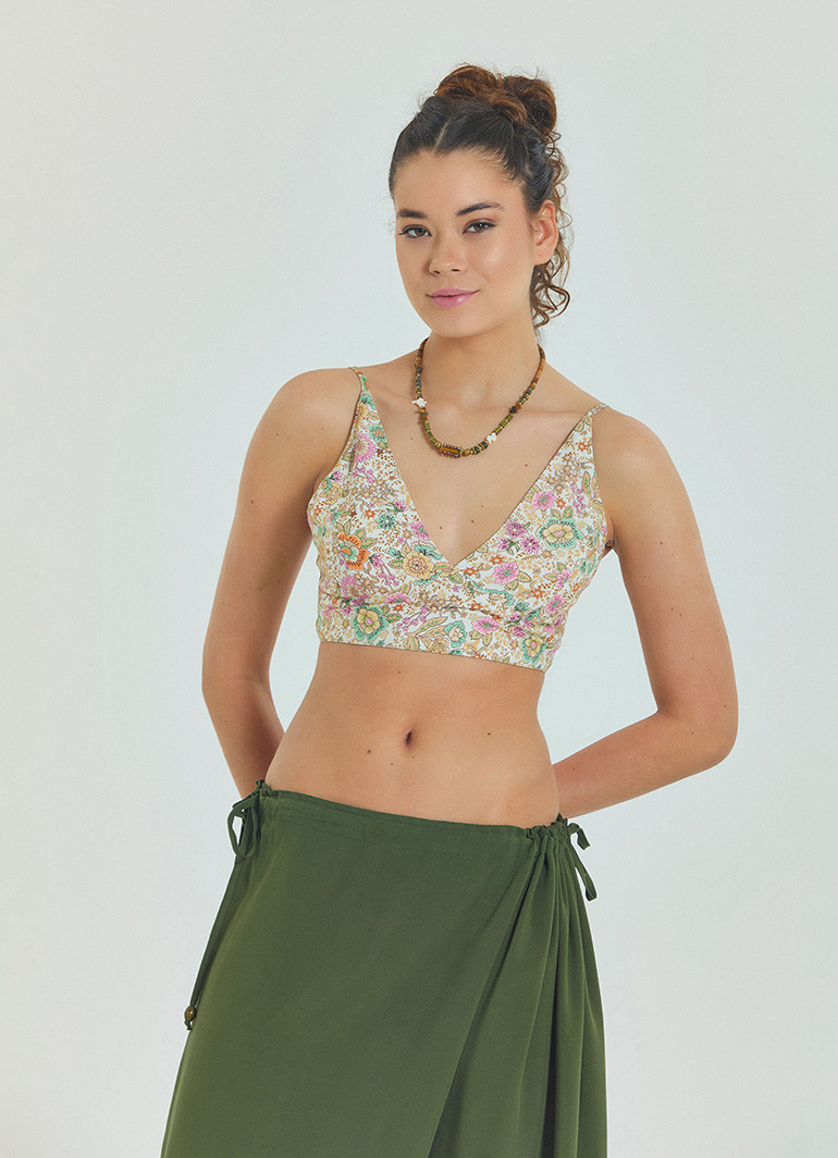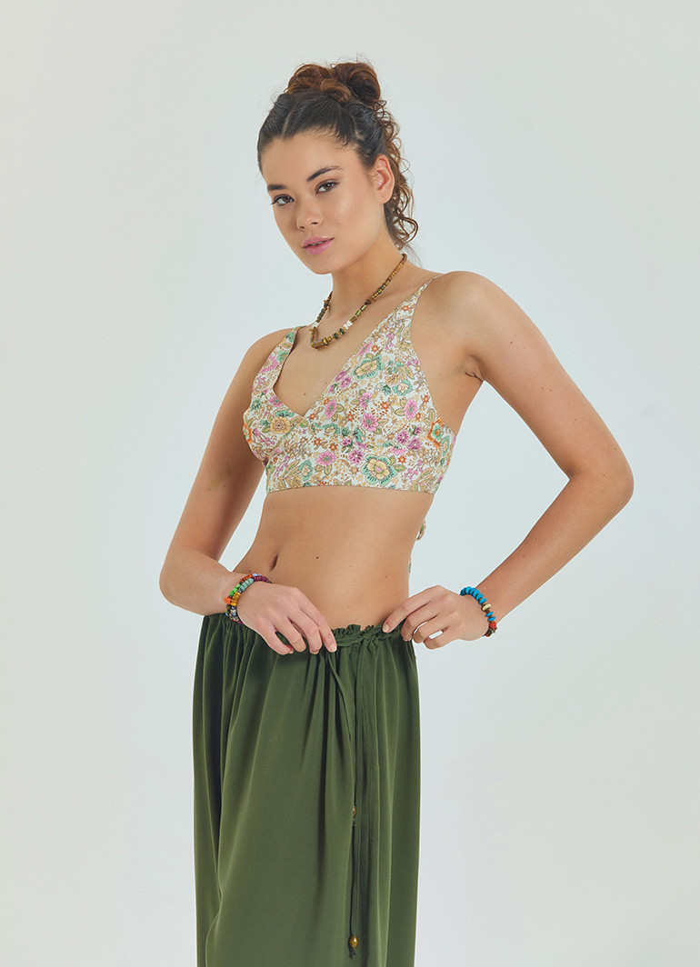 Ayarlanabilir bağcıkları sayesinde sırtı açık askılı tasarım, hem rahat hareket imkânı sunar hem de feminen bir dokunuş katar.