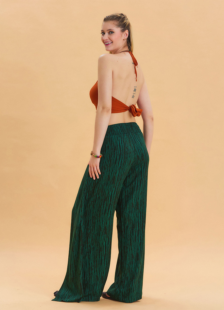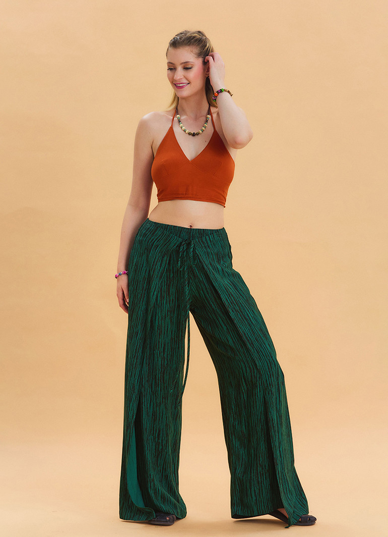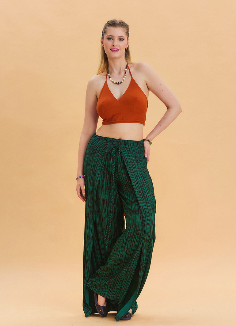 Bağlama Detaylı Beli Lastikli Yeşil Etnik Pantolon 6790