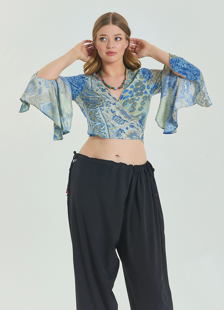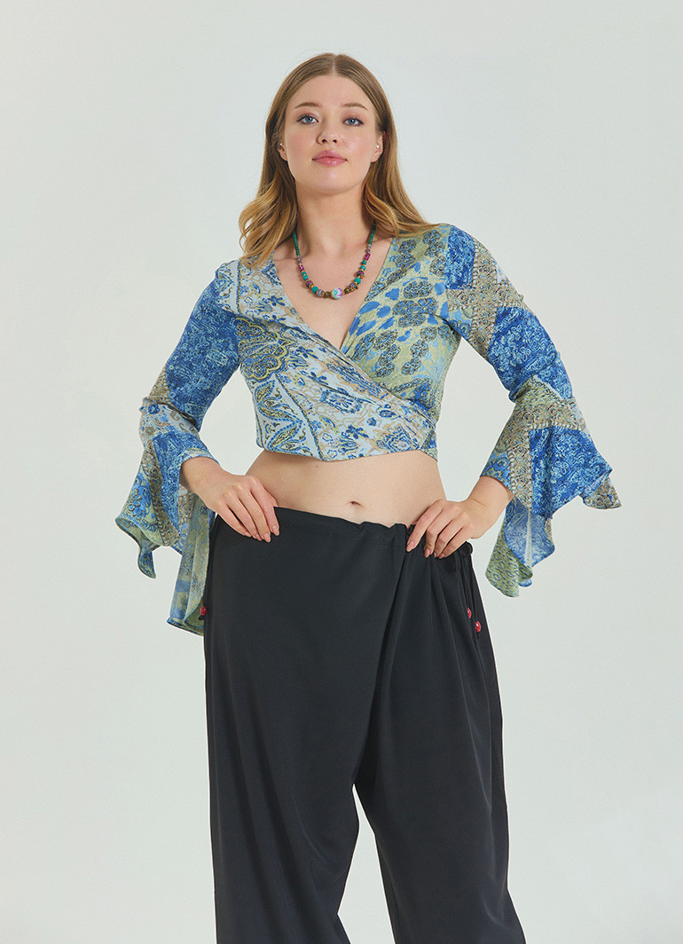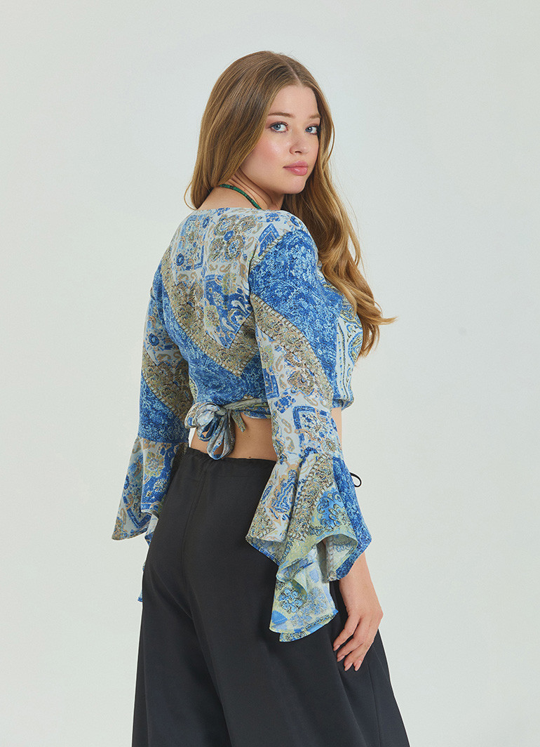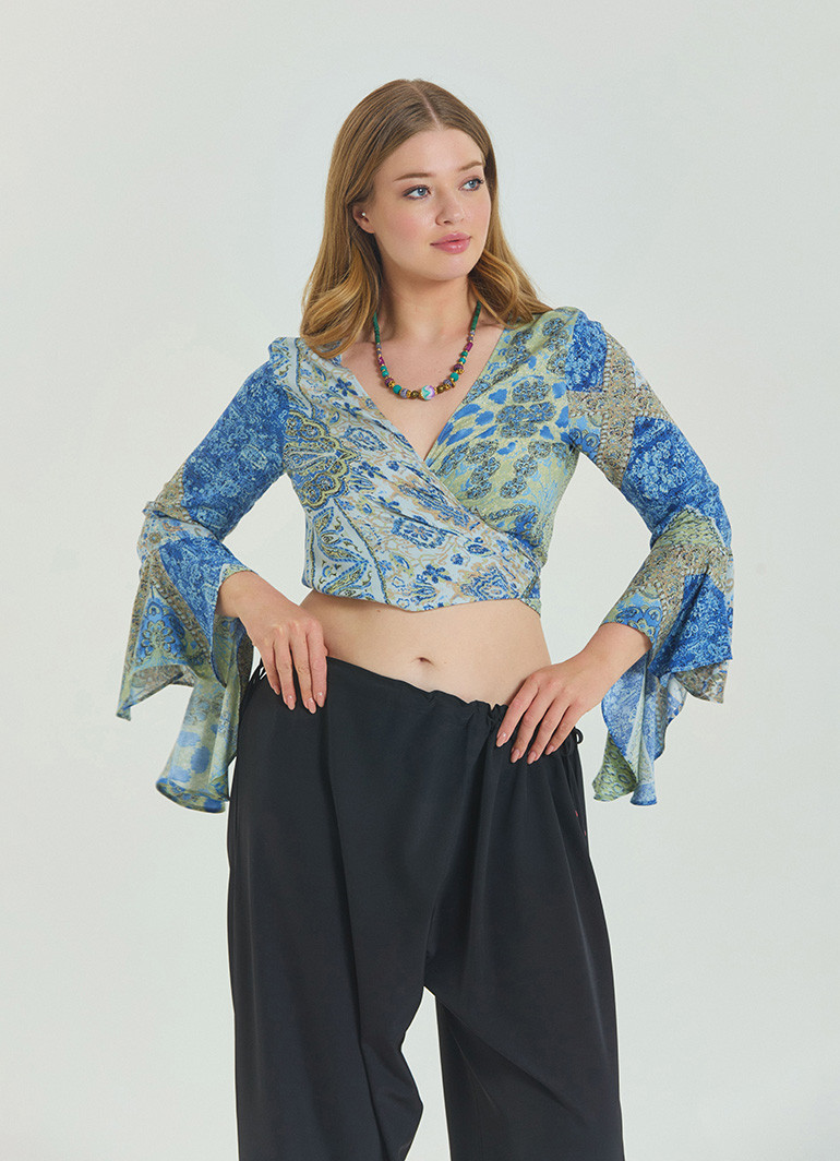 Bağlamalı İspanyol Kol Mavi Büyük Beden Bluz 6940 ile stilinizi yaz enerjisiyle buluşturun! Modern kruvaze yaka ve feminen kol detaylarıyla tasarlanan bu bluz, rahatlığı ve zarafeti bir arada sunar.