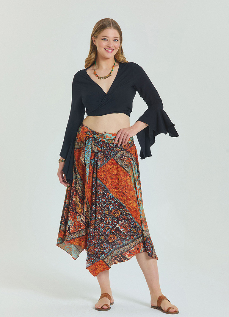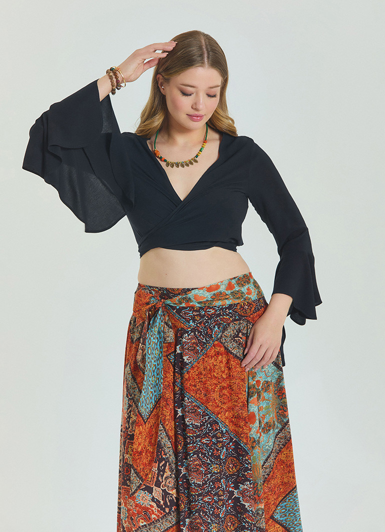 Feminen detaylarla zarafeti buluşturan Bağlamalı İspanyol Kol Siyah Büyük Beden Bluz 6939, yaz stilinize hafiflik ve şıklık katıyor. Kruvaze yakası ve bağlamalı formu sayesinde vücuda kusursuz otururken, volanlı İspanyol kol detayı hareketli bir görünüm sunar.
