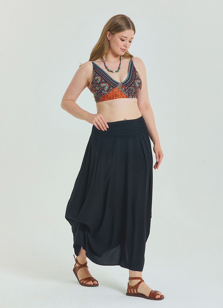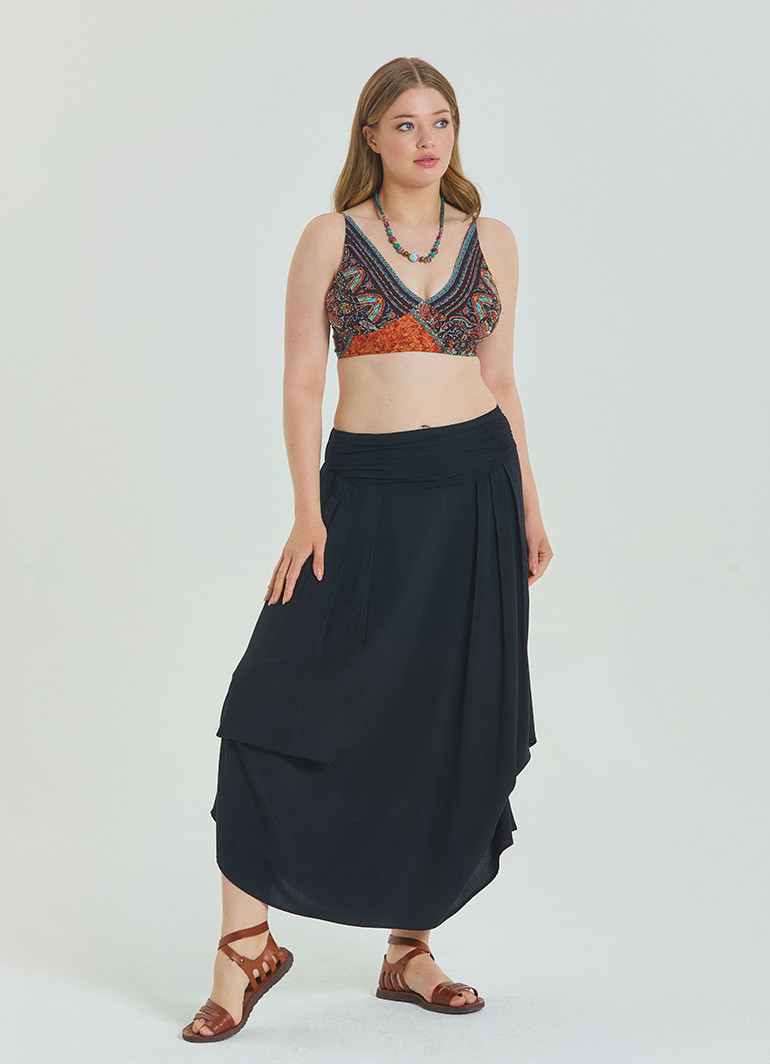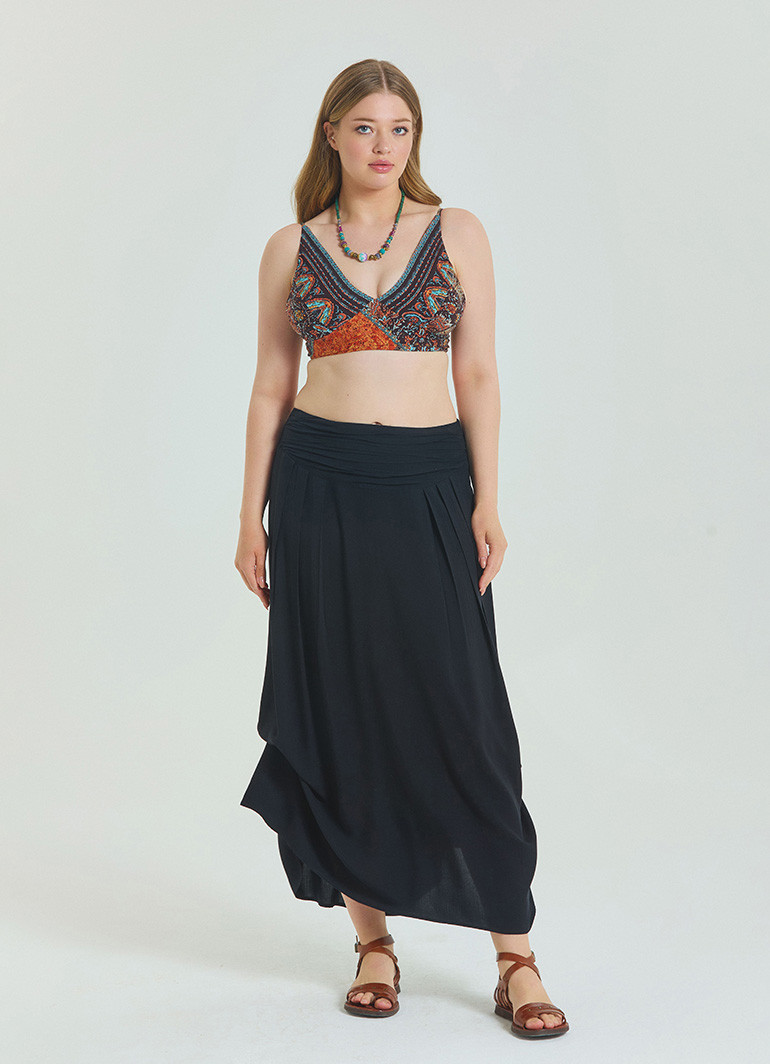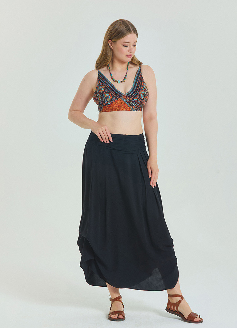 Büyük beden konforunu ve zarafeti bir arada sunan “Beli Lastikli Drape Detaylı Siyah Büyük Beden Etek 6919”, gardırobunuzun favorisi olacak. Akıcı drape detayları, her adımda şık bir duruş kazandırır.