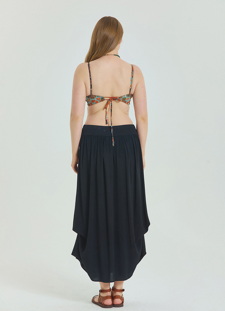 Beli lastikli tasarım, bel bölgesinde ideal esneklik sağlarken A-kesim midi boy modeli, farklı vücut tiplerine uyum sunar. Günlük kullanımın yanı sıra özel davetlerde de rahatlıkla tercih edebilirsiniz.
