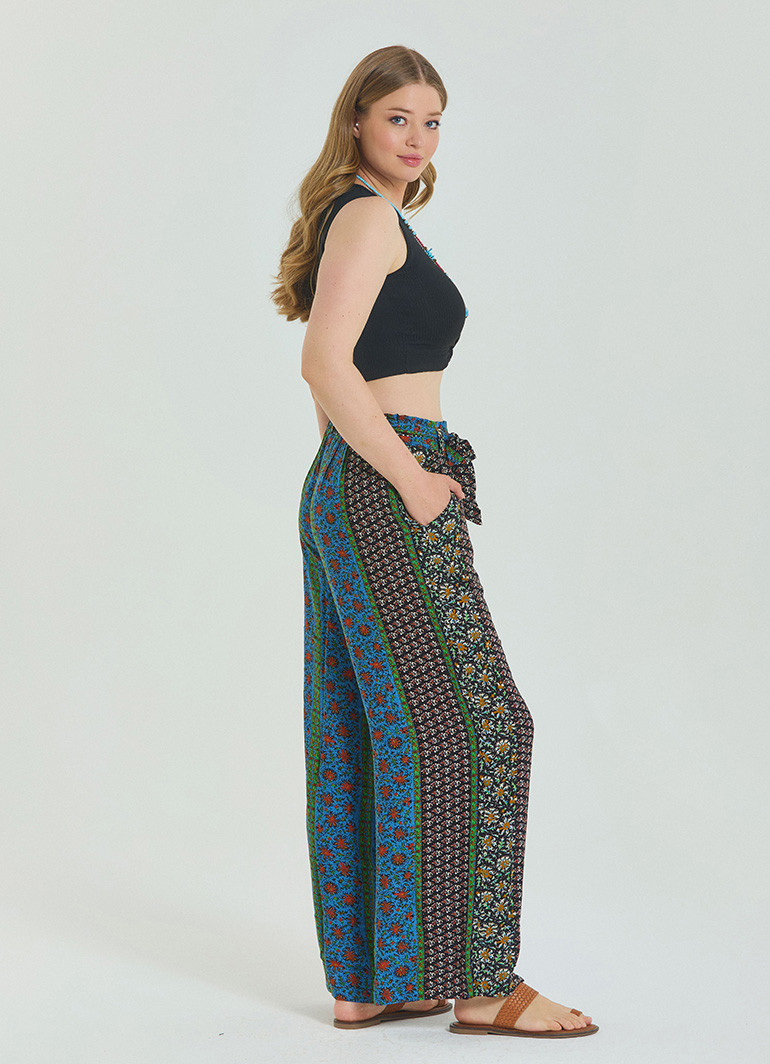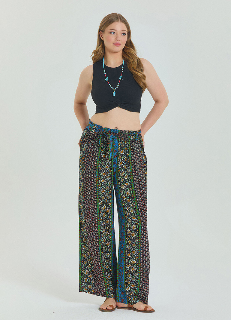 Bol paça kesimi ve geniş kuşak detayı, modern bir siluet oluştururken hareket özgürlüğünüzü kısıtlamaz.