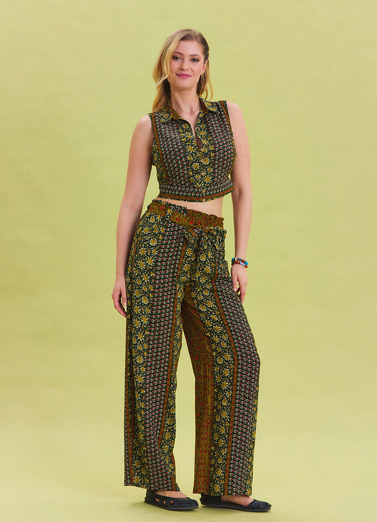 Şıklığı ve rahatlığı bir arada sunan Beli Lastikli Kuşak Detaylı Yeşil Otantik Pantolon 6892, yazlık gardırobunuzun vazgeçilmezi olacak. Doğal viskon kumaşı, hafifliği ve nefes alabilir yapısıyla terletmeden tüm gün rahatlık sağlar.