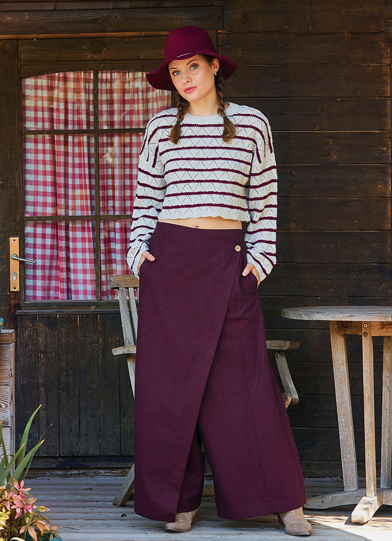 Bel üstü kesimi ve crop modeli sayesinde günlük kombinlerinize hareket katar, bordo çizgili detayıyla tarzınızı öne çıkarır.