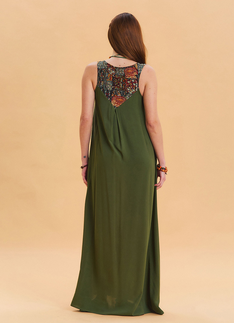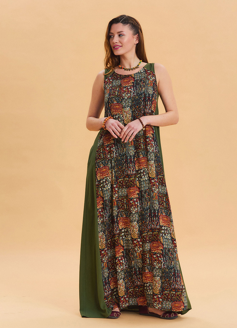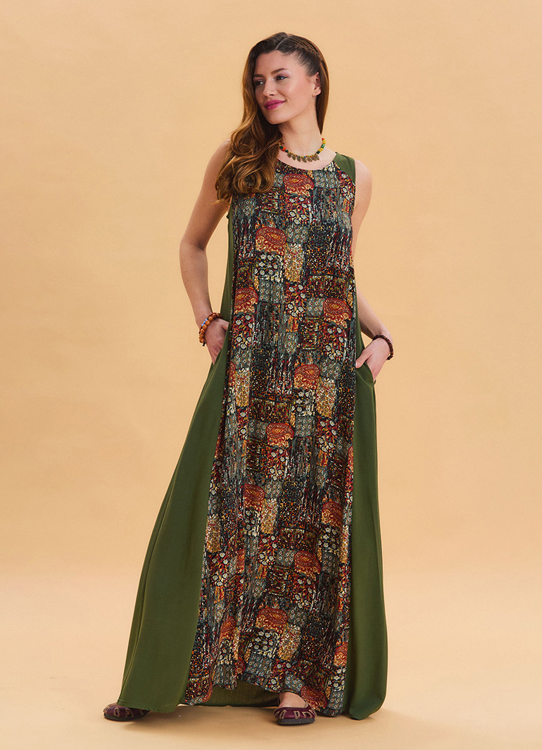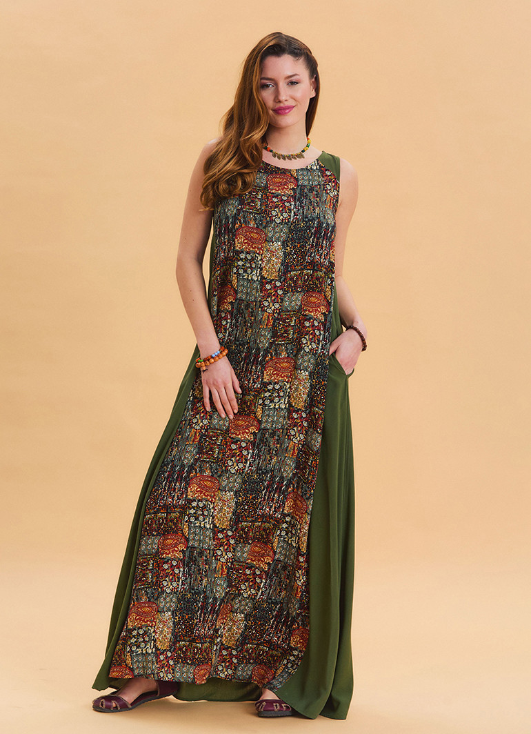 Bisiklet Yaka Cep Detaylı Haki Salaş Elbise 6827