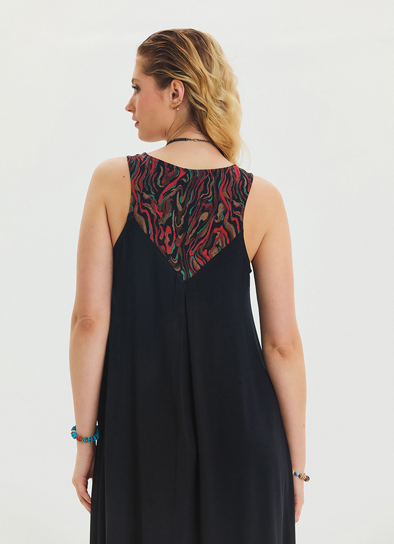 Zarif detayları ve modern kesimiyle dikkat çeken Bisiklet Yaka Cep Detaylı Siyah Uzun Elbise 6824, kadın stiline sofistike bir dokunuş sunar. Yaz aylarında ferah ve şık bir görünüm elde etmeniz için ideal olan bu elbise, her ortamda kendinizi özel hissetmenizi sağlar.