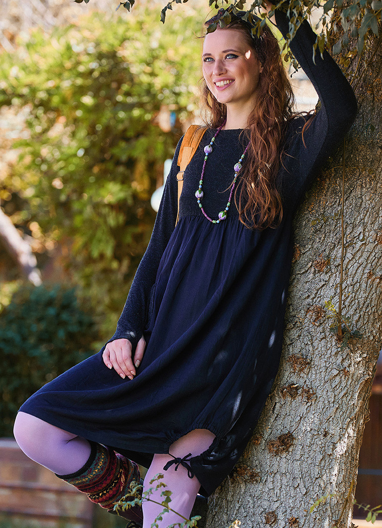 Uzun kollu ve çift renkli dokusu, elbiseye sofistike bir hava katarken, parmak geçmeli özelliği ile ellerinizi sıcak tutmanıza yardımcı olur. Standart bedeni (36-42) ile farklı vücut tiplerine uyum sağlar.