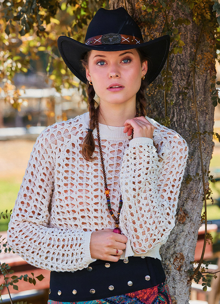 Şıklığı ve rahatlığı bir arada sunan Bisiklet Yaka Delikli Ekru Uzun Kollu Bluz 7078, günlük stilinizi modern bir dokunuşla tamamlar. Crop kesimi ve zarif delikli detaylarıyla hem casual hem de şık kombinler için mükemmeldir.