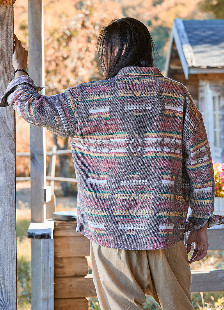 Ürün, Türkiye’de üretilmiş olup kaliteli işçiliği ile dikkat çeker. Etnik desenleri, gömleğe karakter katar ve farklı kombinlerle kolayca uyum sağlar.
