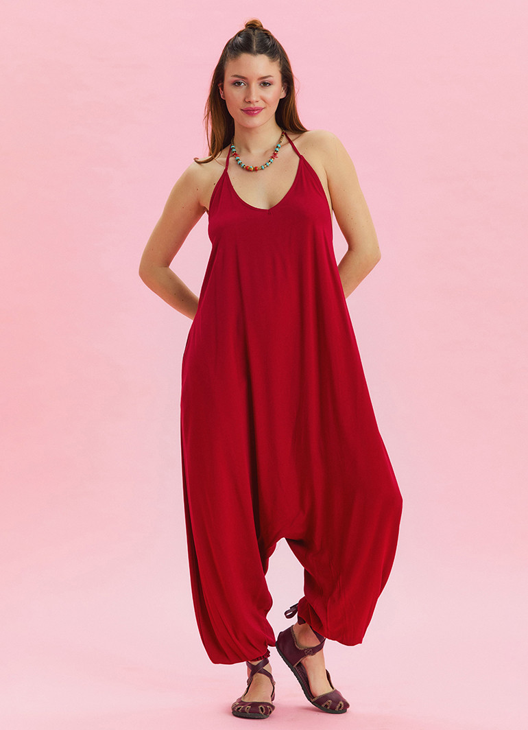 Boyundan bağlamalı, pacası lastikli kırmızı kadın yazlık tulum, yazın enerjisini ve stilini yansıtan eşsiz bir parça. Şıklığı ve rahatlığı bir arada sunan bu tulum, modern tasarımıyla günlük kombinlerinizin vazgeçilmezi olacak.