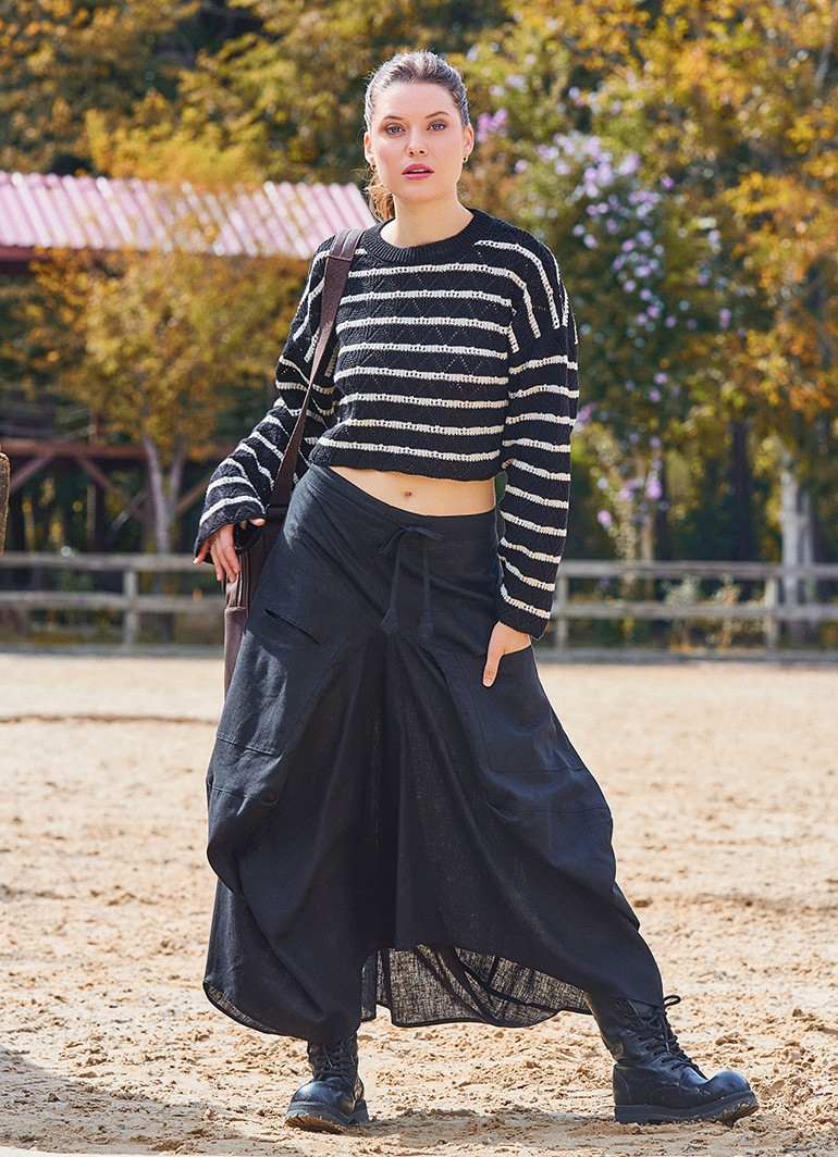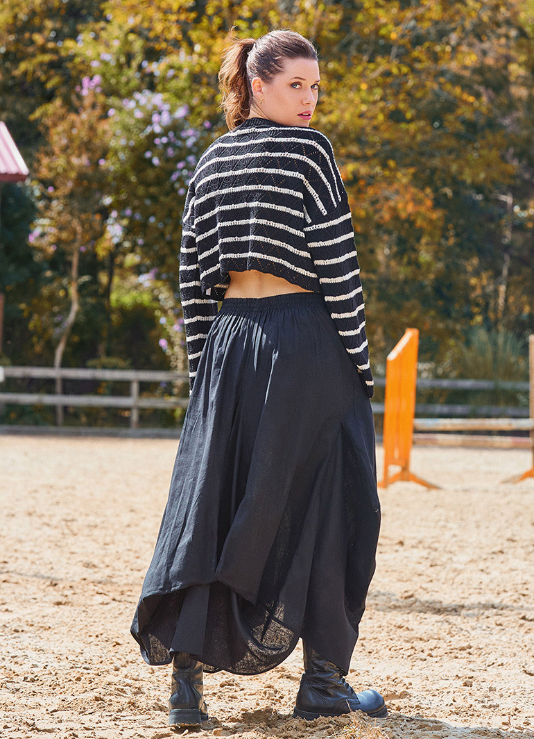 Doğal dokulu pamuk, keten ve viskon karışımı kumaşı sayesinde yaz sıcaklarında nefes alır, terletmez. Polyester içermemesiyle cilt dostudur ve hafif yapısıyla gün boyu konfor sunar.