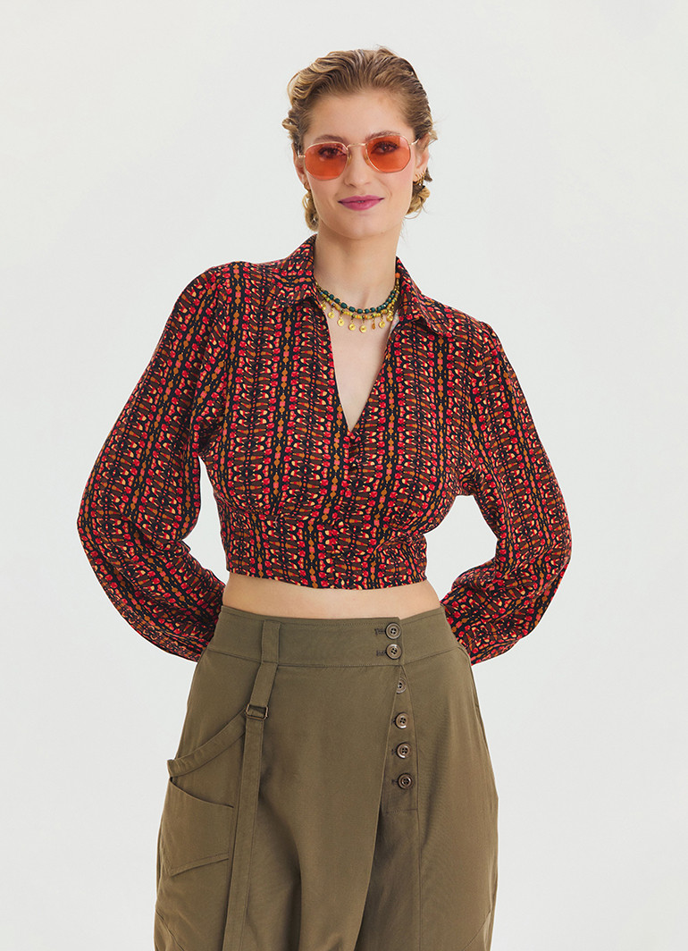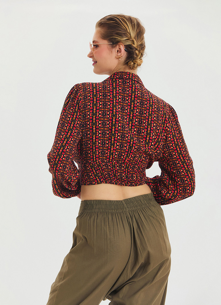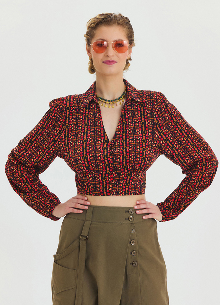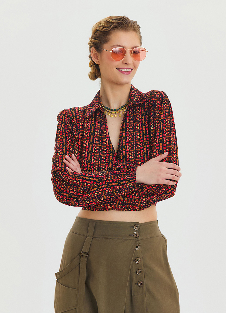 Desenli Gömlek Yaka Kırmızı Uzun Kollu Bluz 6749, modern ve şık tasarımıyla dolabınızın vazgeçilmezi olacak! Şık desenleri, gömlek yaka ve düğme detayları ile zarif bir görünüm sunar. Uzun kollu yapısı ve hafif kumaşı sayesinde mevsim geçişlerinde rahatlıkla tercih edebilirsiniz.