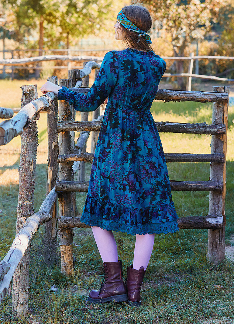 Bohem stilinin zarafetini yansıtan Düğme Detaylı Dantelli Mavi Desenli Uzun Kollu Elbise 7060, kış kombinlerinizin vazgeçilmezi olmaya aday. İnce dantel detayları ve şık düğmeleriyle her adımda sofistike bir görünüm sunar.