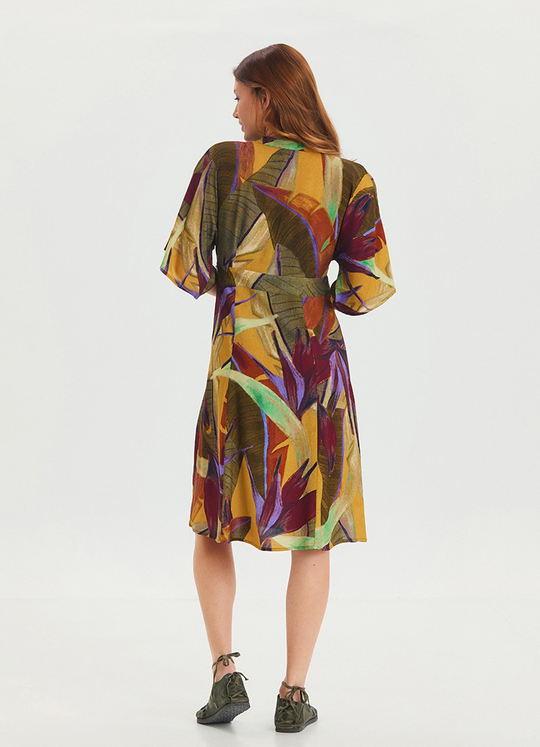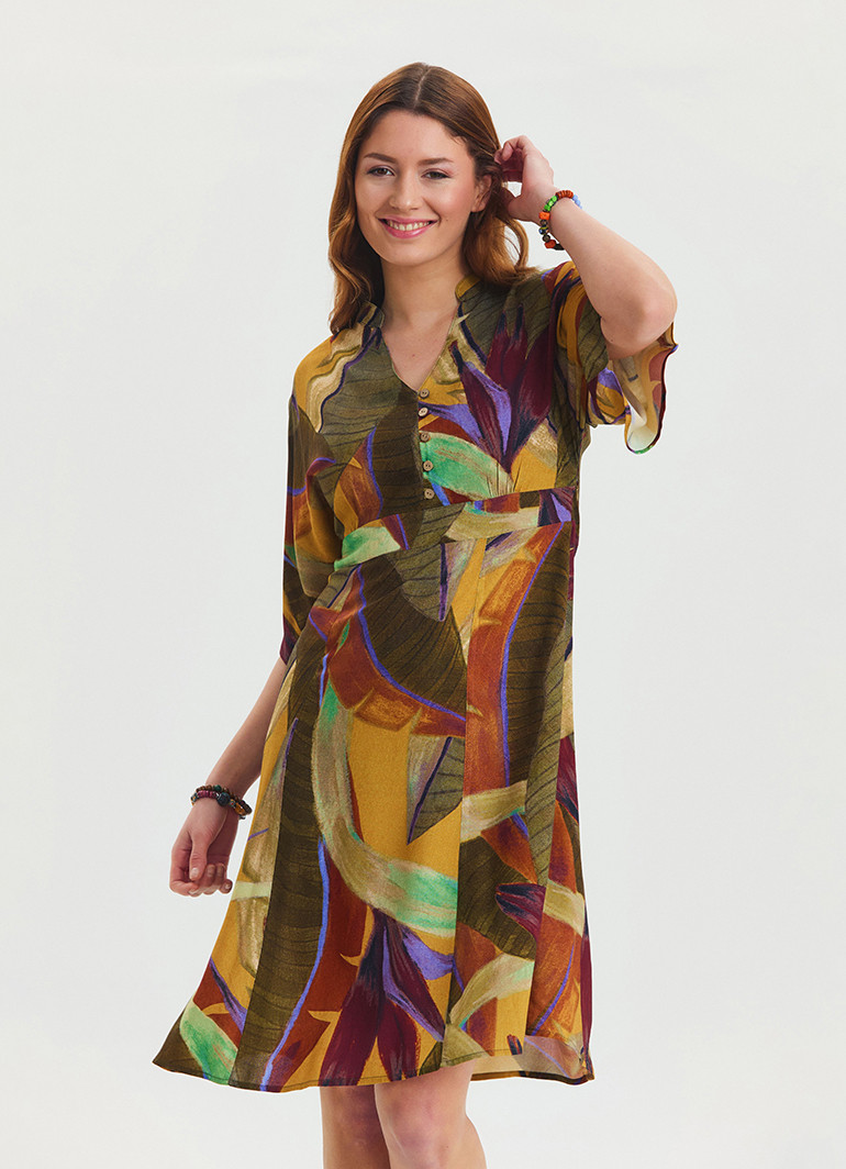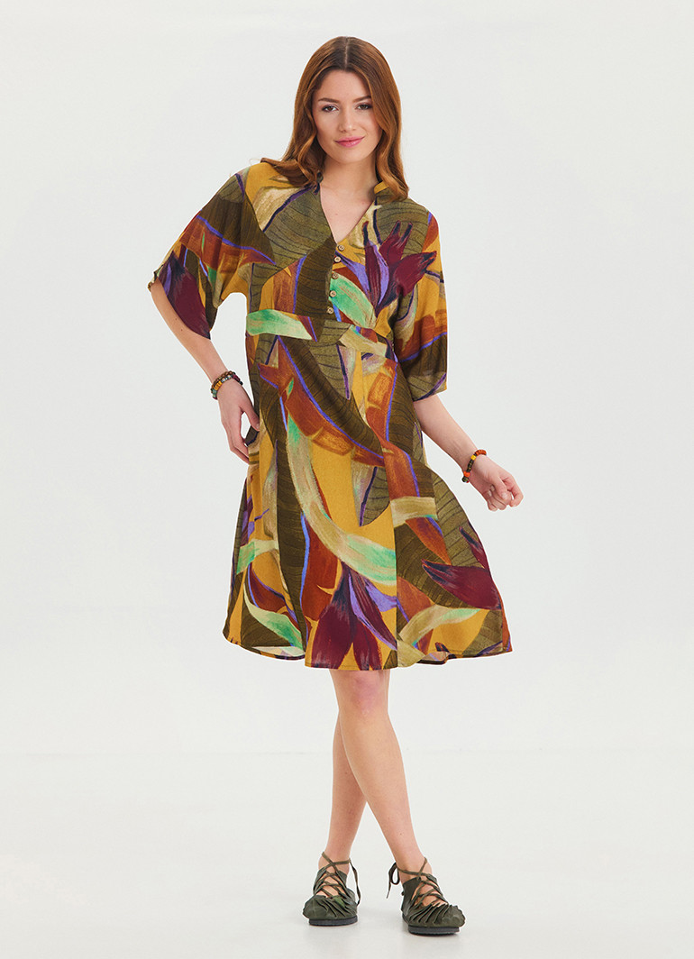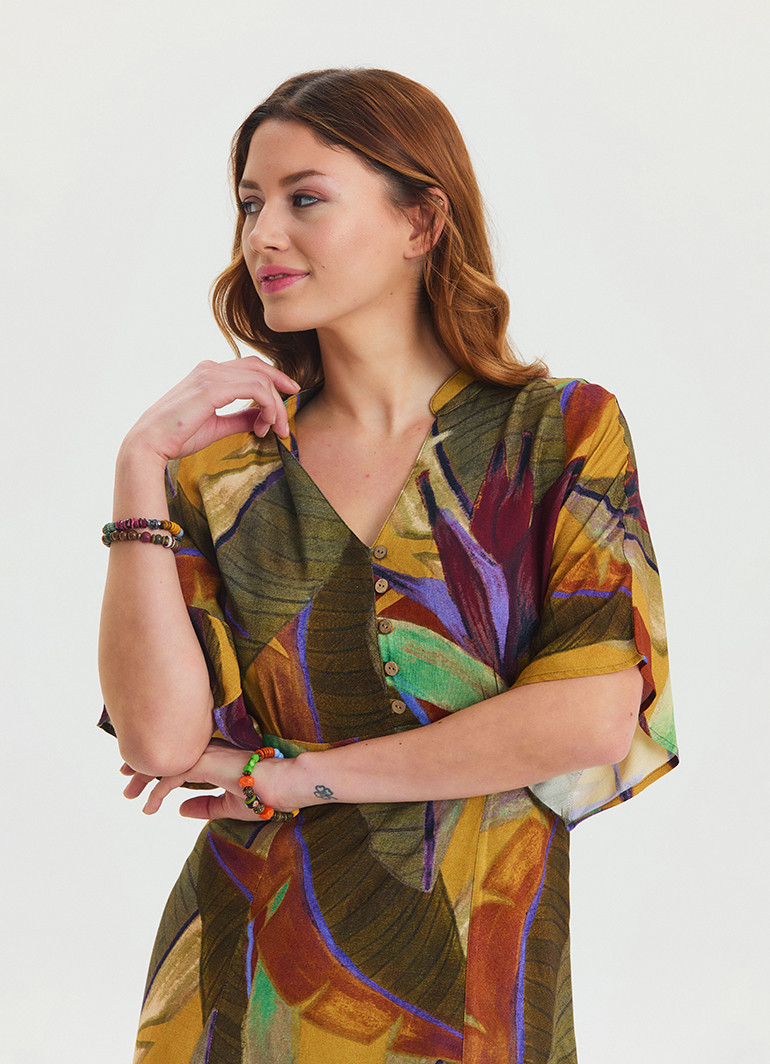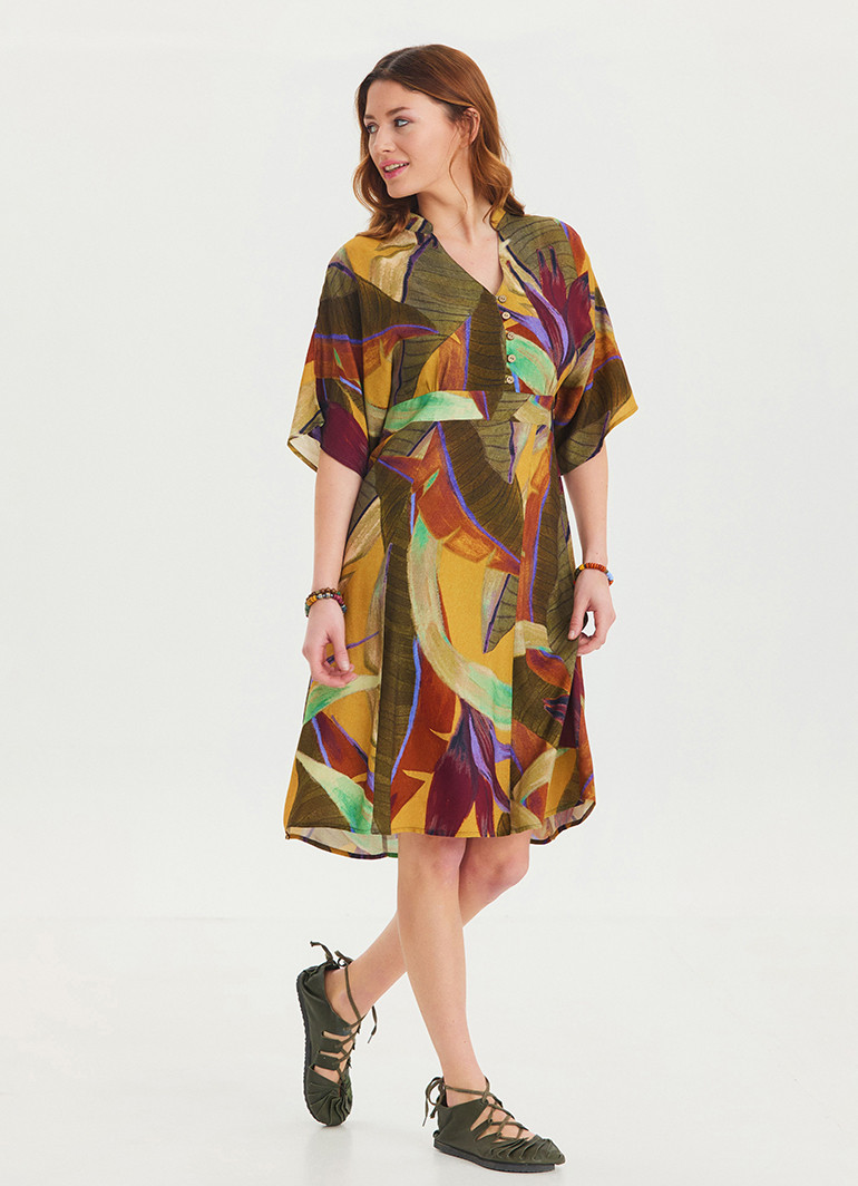 %100 dokuma viskon kumaş kullanılarak üretilen bu elbise, kayın ağacından elde edilen doğal selüloz sayesinde cildinizin nefes almasını sağlar; böylece yaz aylarında konfor ve ferahlık sunar.