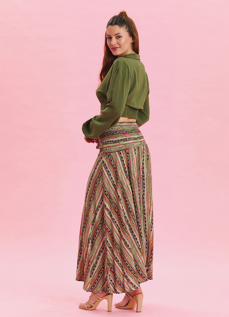 Etnik Desenli Bağcıklı Cepli Uzun Şalvar Etek 5330