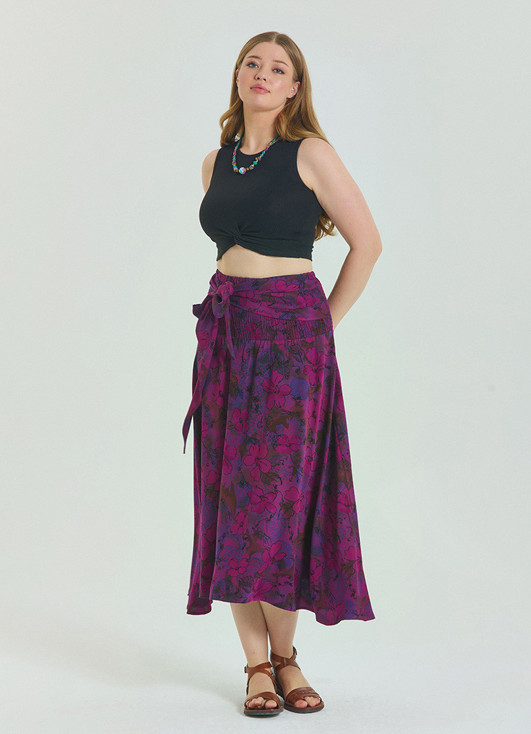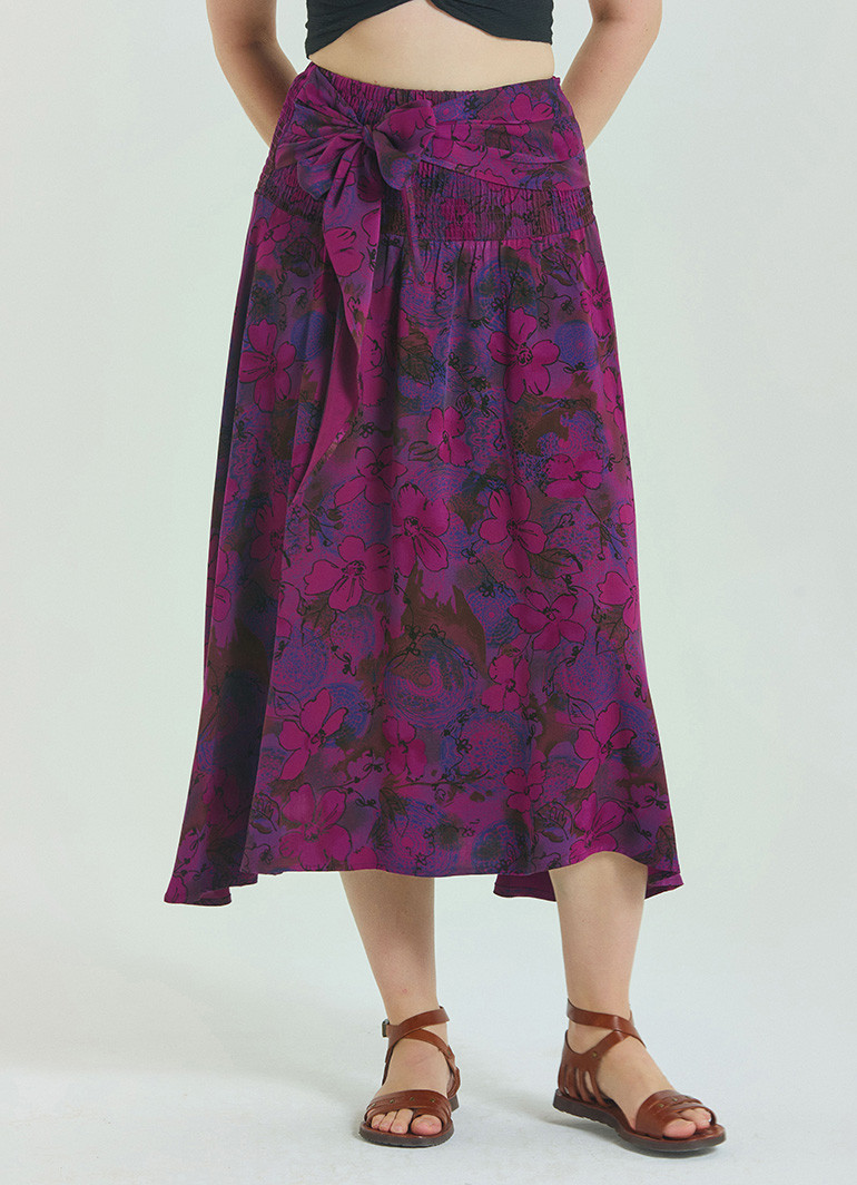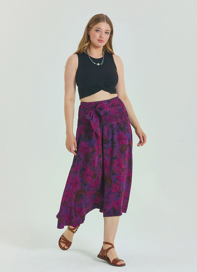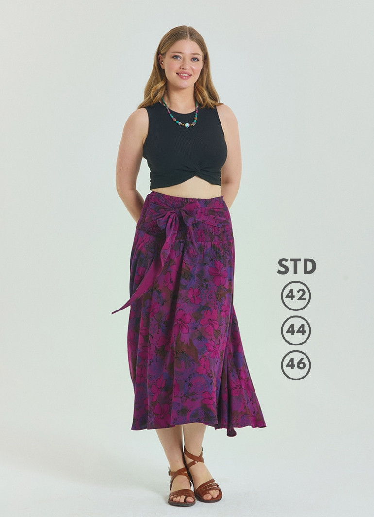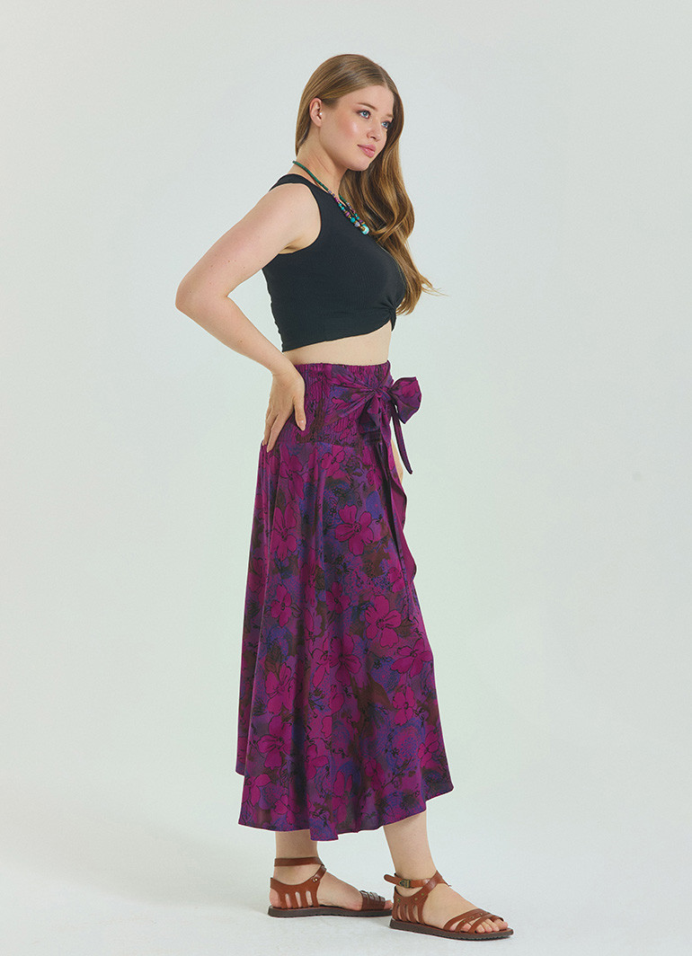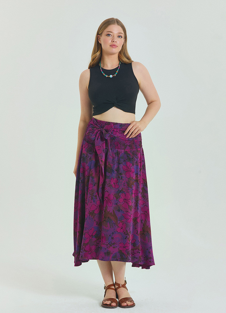Günlük şıklığınızı ve konforunuzu bir arada buluşturan Gipe Belden Bağlamalı Şarabi Desenli Büyük Beden Etek 6917, zarif şarabi desenleriyle gardırobunuzun vazgeçilmezi olacak.