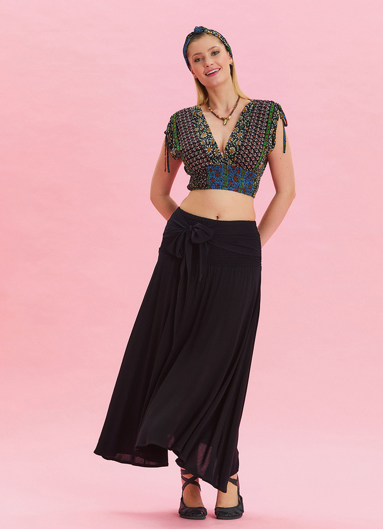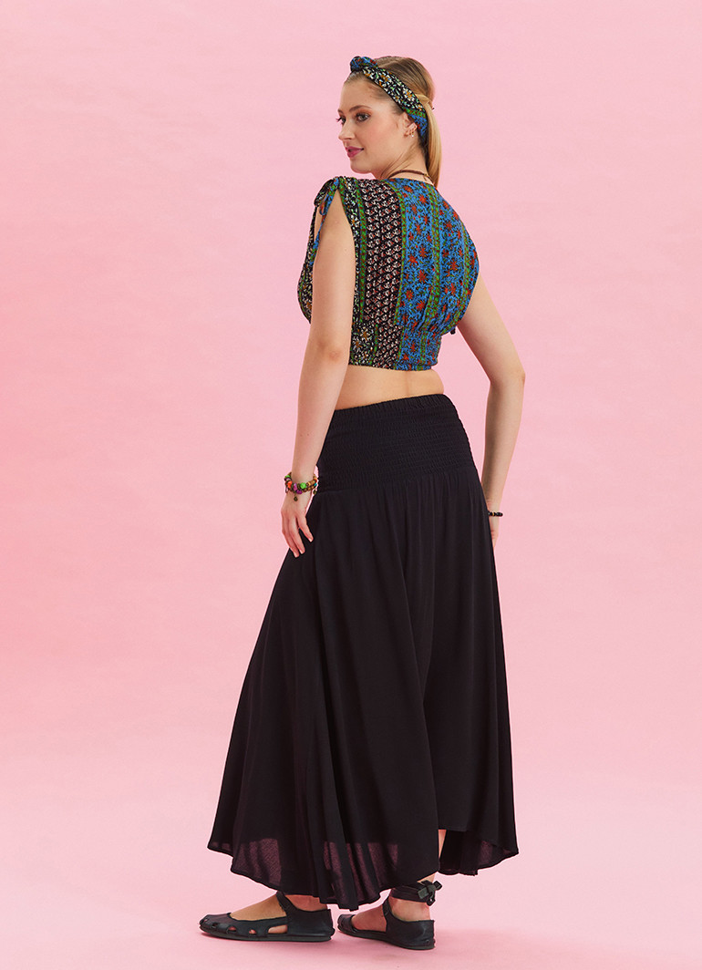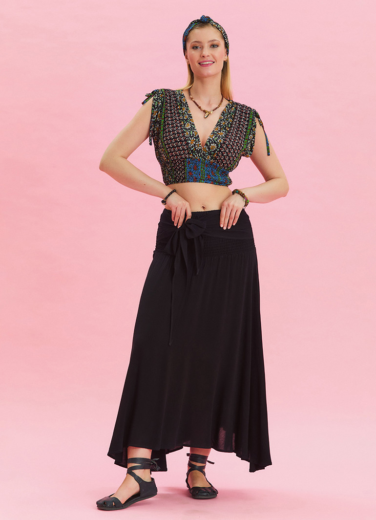 Gipe Belden Bağlamalı Siyah Salaş Etek 6829