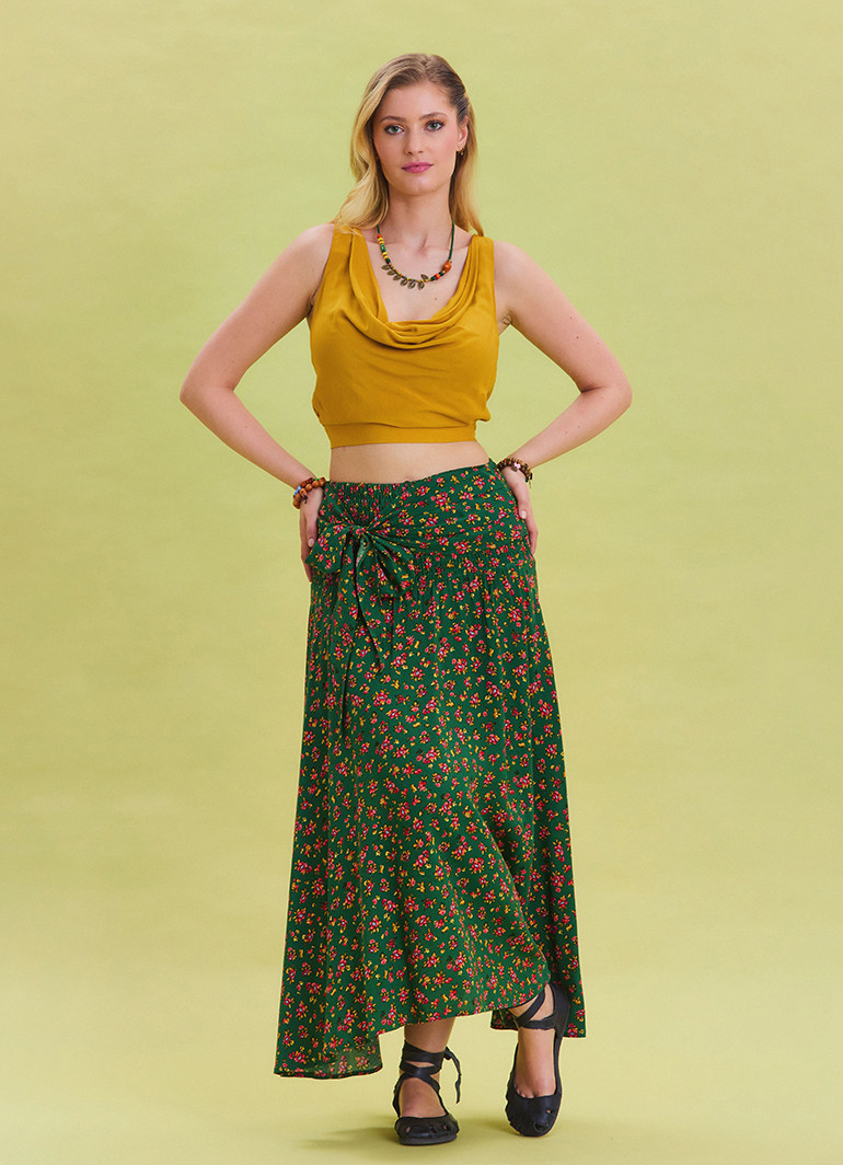 Gipe Belden Bağlamalı Yeşil Desenli Etnik Etek 6833, modern ve özgün tasarımıyla gardırobunuzda fark yaratacak bir parçadır. Etnik esinli dokunuşları, şıklığı ve rahatlığı bir arada sunar.