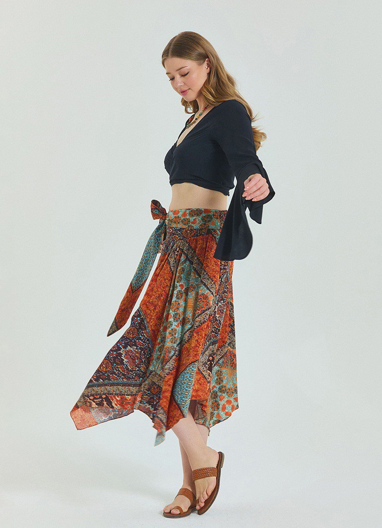 Sıcak havalarda ferahlık ve şıklığı bir arada sunan Gipe Detaylı Beli Bağlamalı Kahve Büyük Beden Etek, yaz gardırobunuzun vazgeçilmezi olacak.