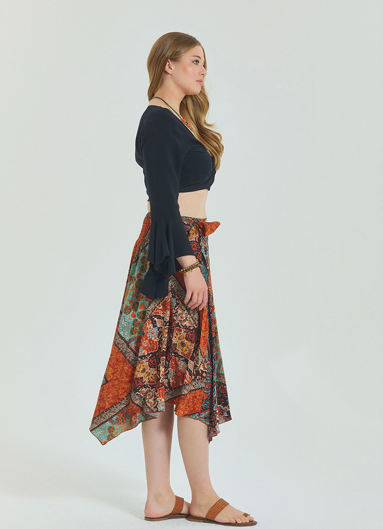 Beli ayarlanabilir bağlama detayı sayesinde vücut hatlarınızı nazikçe kavurur; gipe katmanları hareket özgürlüğü tanır ve her adımda zarif bir akış yakalar.