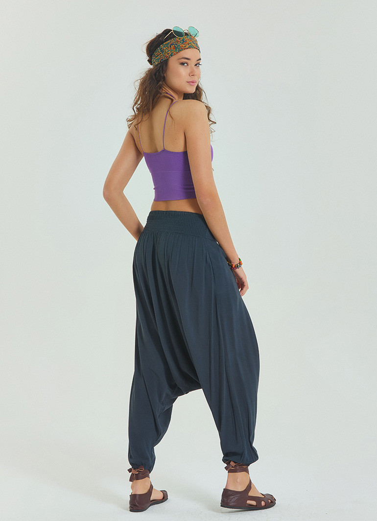 Gipe Detaylı Pacası Lastikli Cepli Antresit Bohem Şalvar 6800