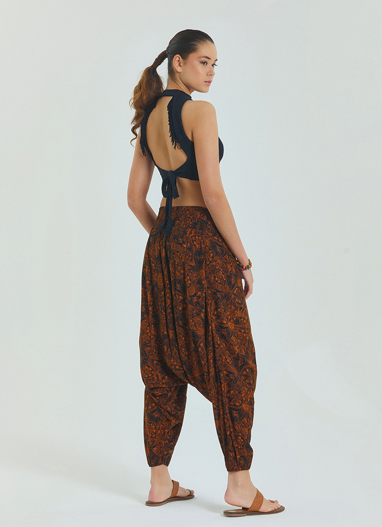 Gipe detaylı pacası, lastikli paçası ve cepleri ile öne çıkan turuncu kadın şalvar, modern tasarımıyla stilinize enerji katıyor. Canlı rengi ve özgün detayları, gardırobunuzda fark yaratacak.