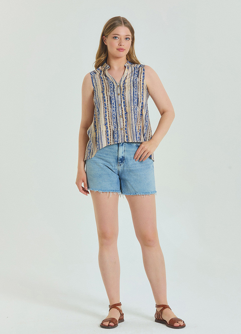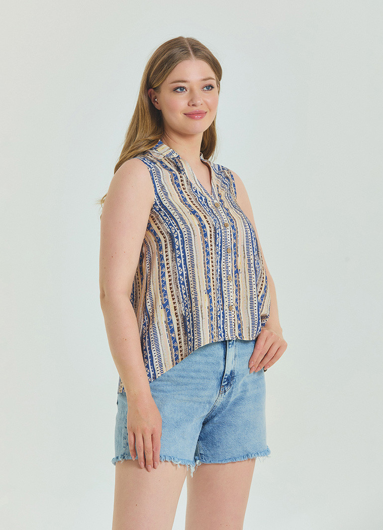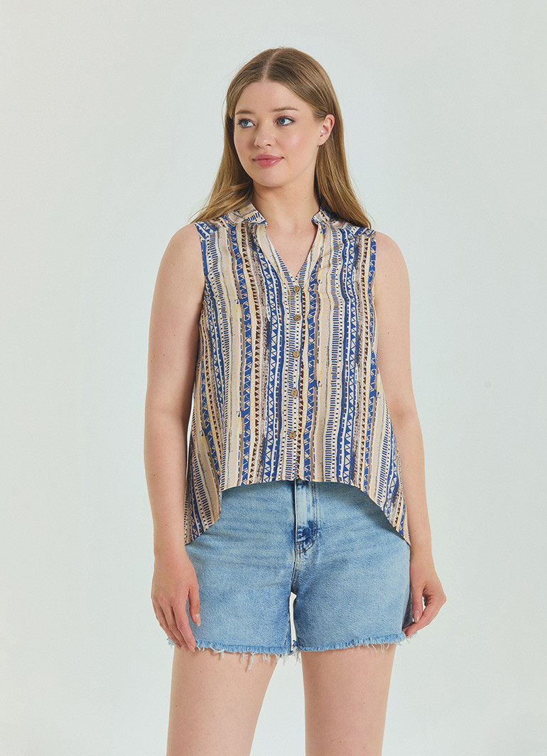 Gömlek Yaka Asimetrik Kesim Bej Etnik Bluz 6873, etnik dokunuşları modern çizgilerle buluşturan benzersiz bir tasarıma sahiptir. Bu bluz, gardırobunuza zarafet katarken, stil sahibi kadınların gözdesi olmaya adaydır.