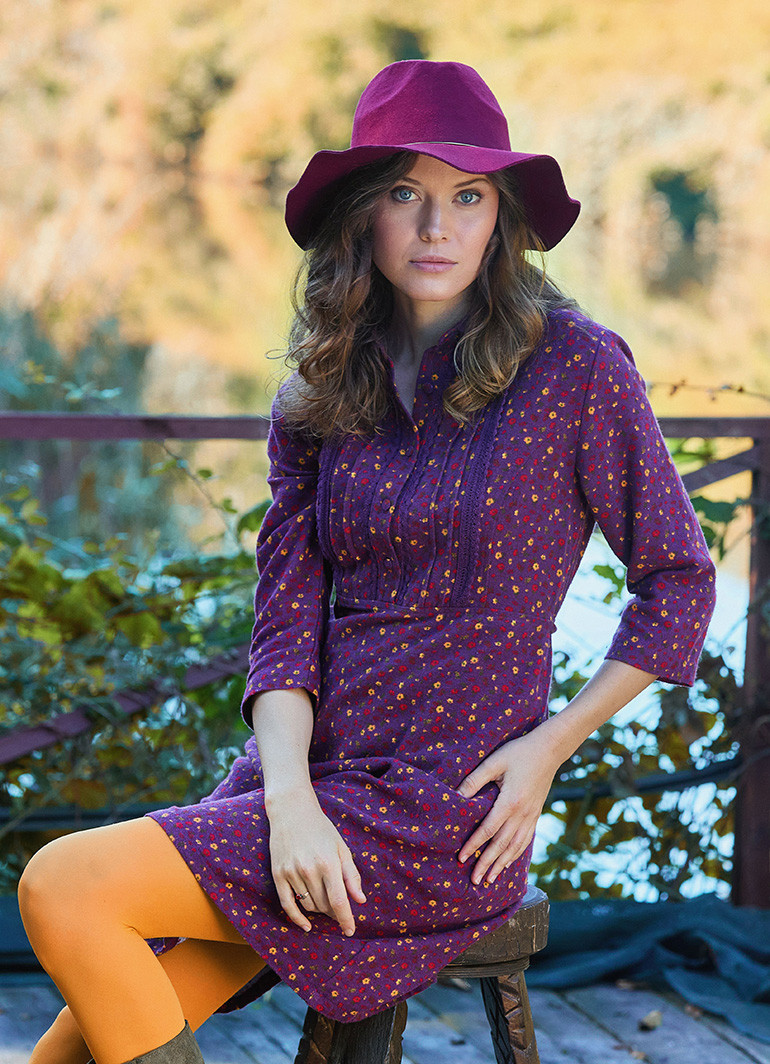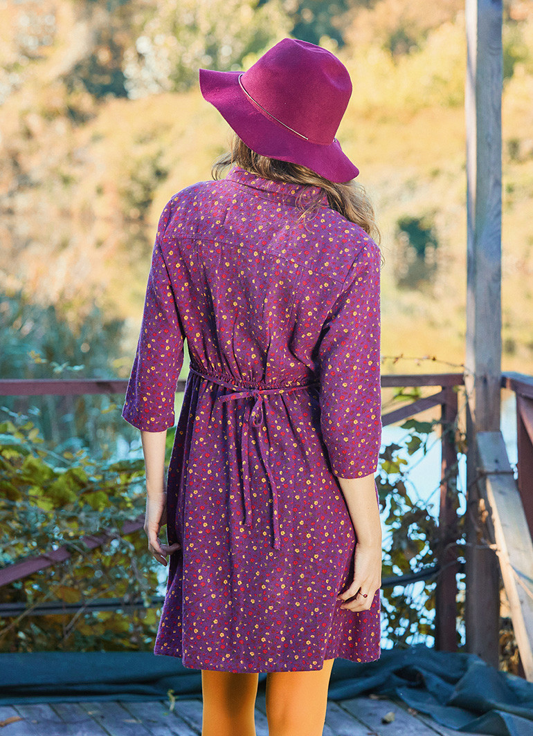 Gömlek yaka ve düğme detaylı, dantelli mor pazen elbise — kış gardırobunuzun hem rahat hem zarif parçası. Yumuşak dokusuyla günlük kullanımda konfor sunar; etnik desenli dantel şeritleri ise sade bir şıklık katar. Salaş ama feminen kesimi sayesinde hem günlük hem ofis kombinlerine kolayca uyum sağlar.