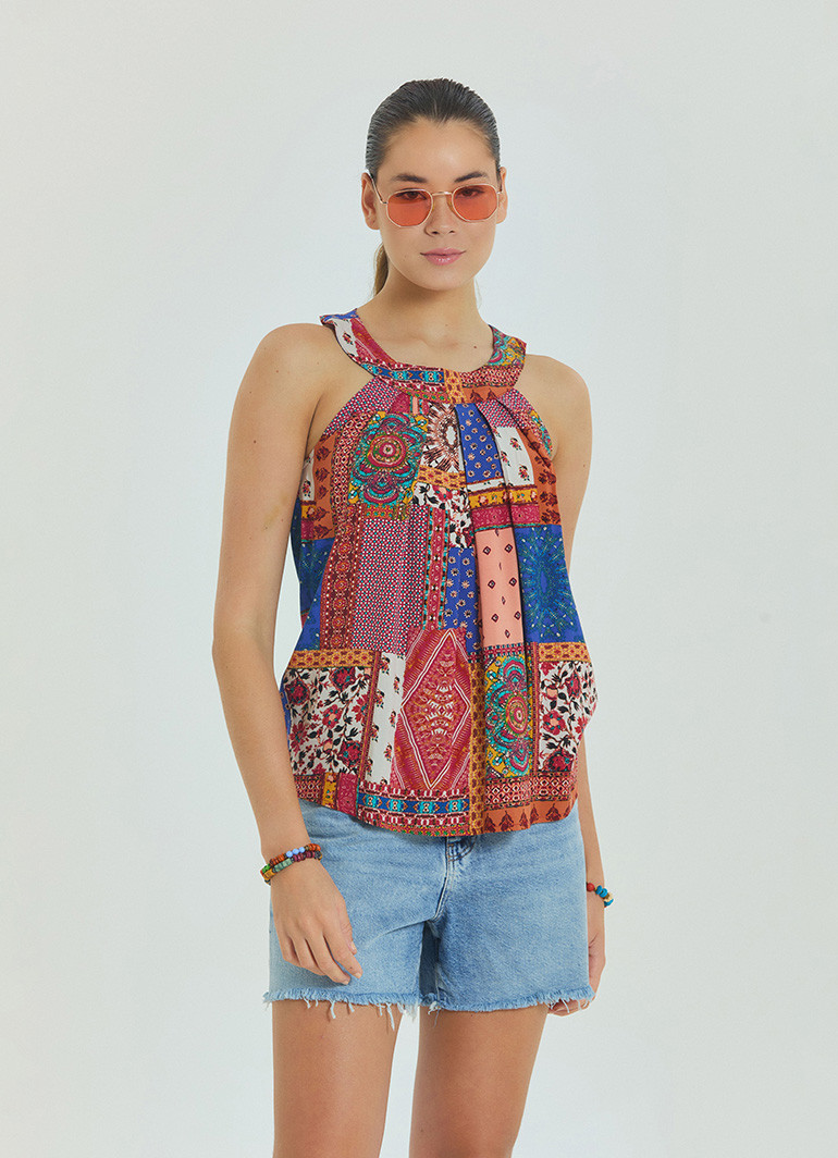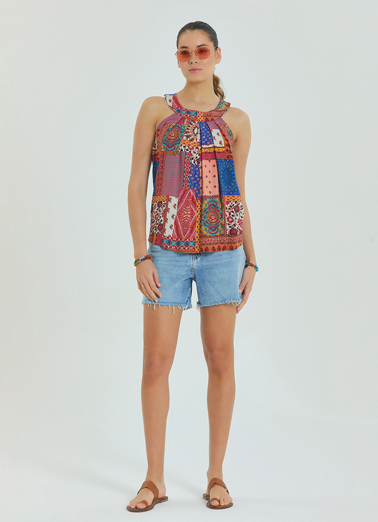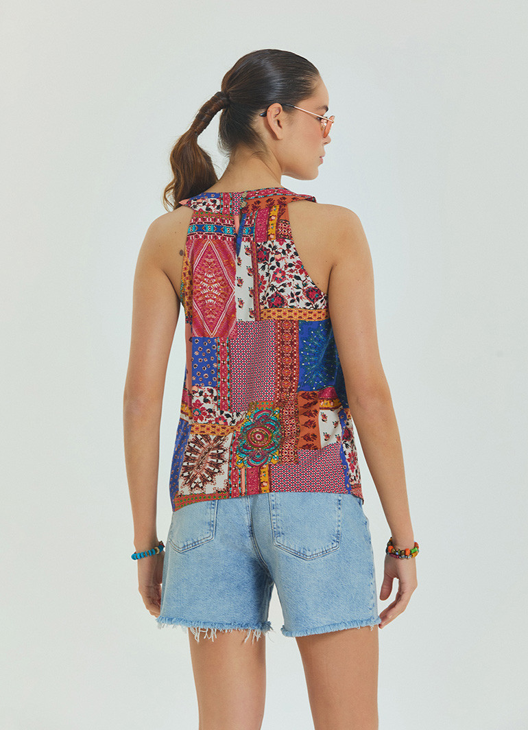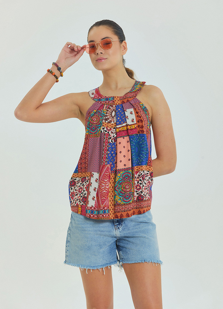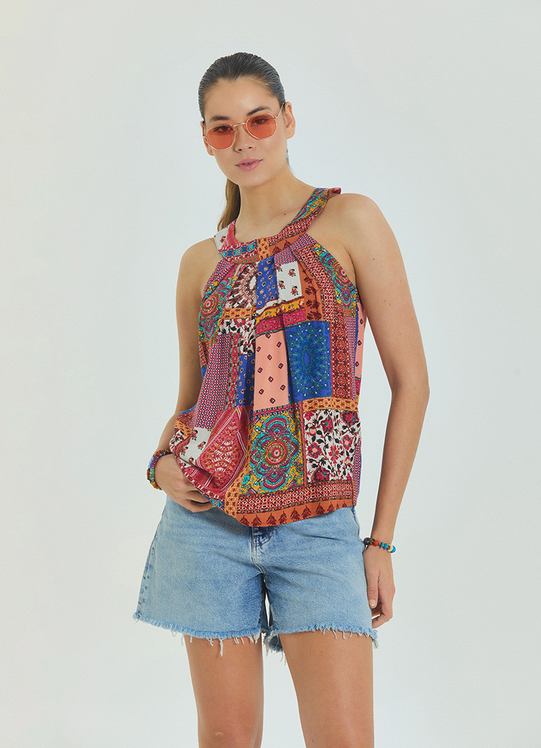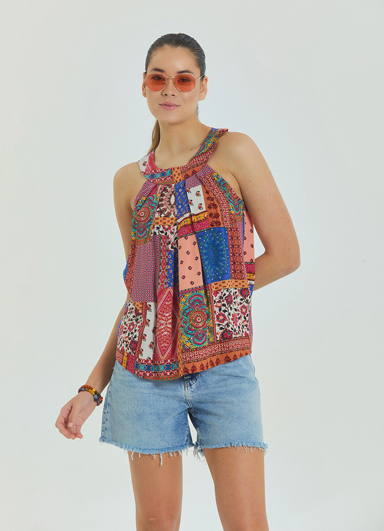 Hafif, nefes alabilir ve tamamen doğal %100 dokuma viskon kumaşı sayesinde sıcak yaz günlerinde serinlik sağlarken, polyester içermeyen yapısı sayesinde terletmez. Etnik desenleri ve bohem havasıyla gündüzden geceye her ortamda rahatlıkla kullanılabilir.