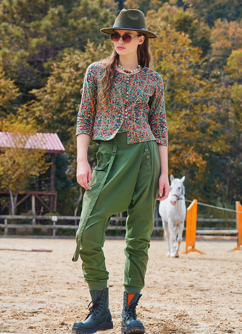 Yaz koleksiyonunuzun vazgeçilmez parçası olacak bu haki bohem şalvar, modern detayları ve rahat kesimiyle öne çıkıyor. İp detaylı düğme beli ve lastikli yapısı, şıklığı ve konforu bir arada sunar.