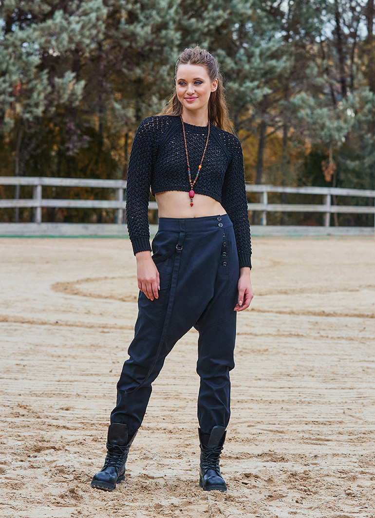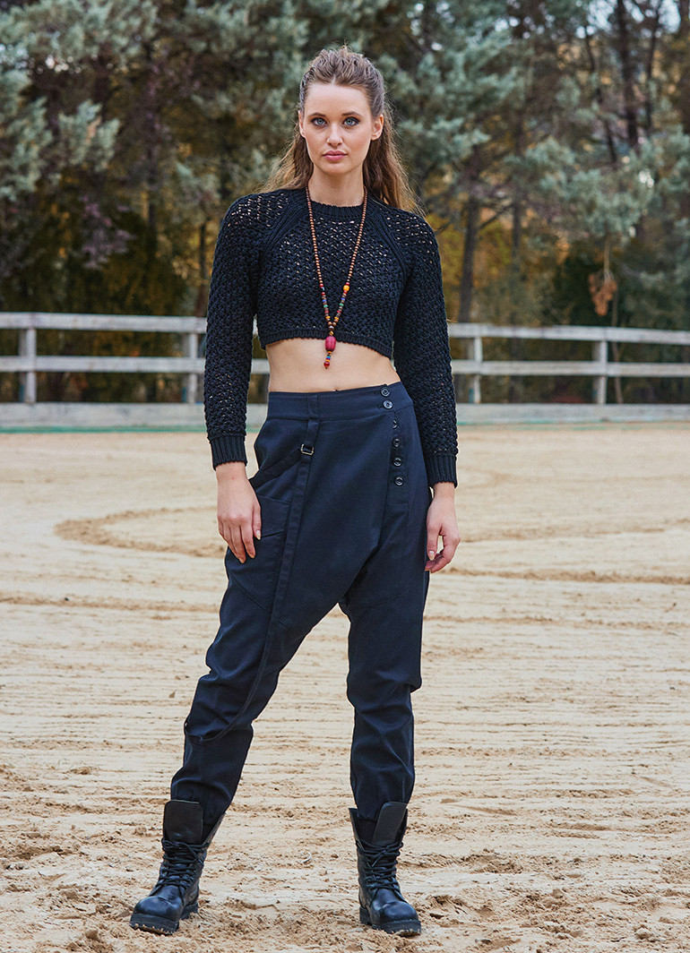 Elastik paça yapısı ve lastikli kesimi, vücudu nazikçe sararak gün boyu konfor sağlar. Düğme ve ip detayları, bohem tarzın modern yorumu olarak dikkat çekerken, şık ve zarif görünümünü tamamlar.