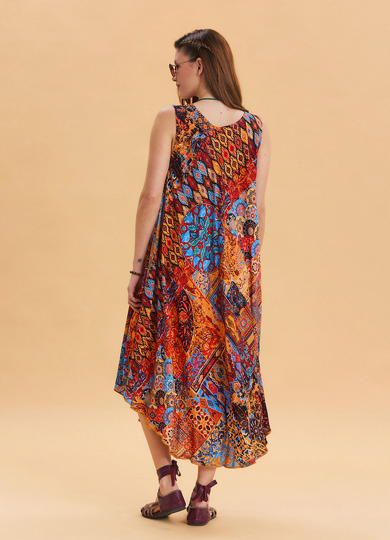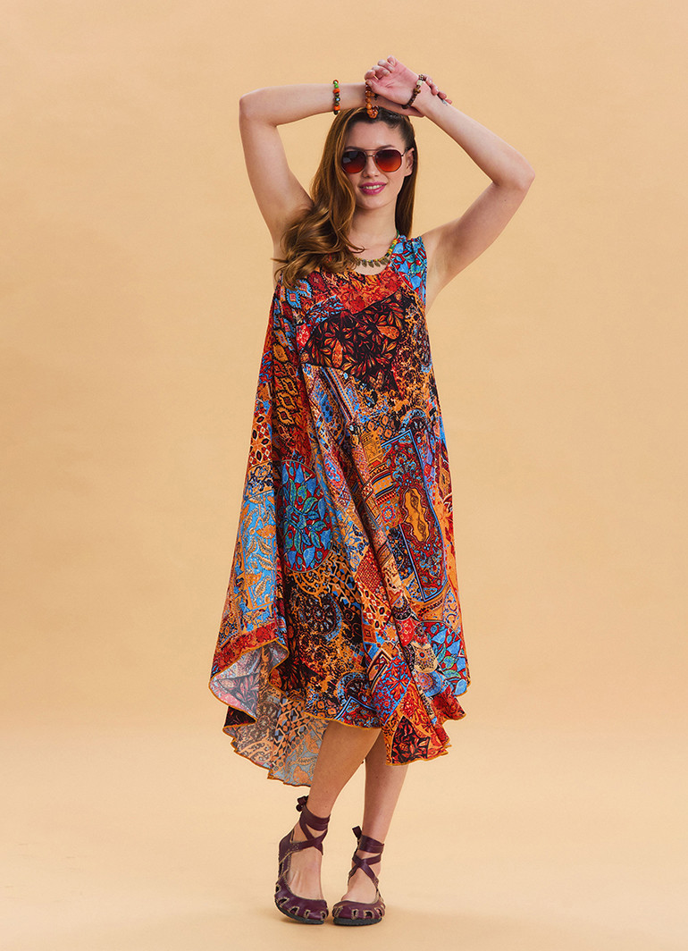 Göz alıcı turuncu tonuyla yaz kombinlerinize canlılık katacak bu kayık yaka salaş elbise, gün boyu ferah bir şıklık sunar. Asimetrik kesimi ve bol yapısı sayesinde hem modern hem de rahat bir stil arayan kadınların favorisi olmaya aday.