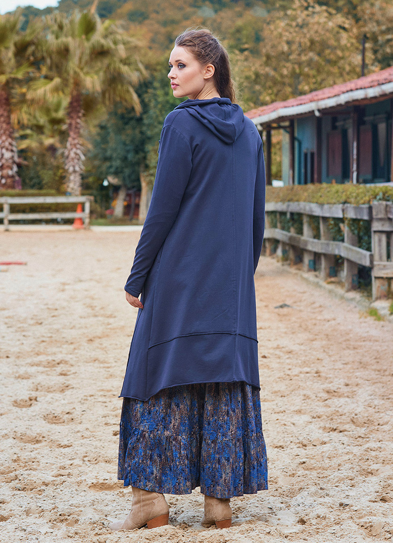 Uzun formu ve salaş kesimiyle hem spor hem de günlük kombinlerinizde rahatlıkla tercih edebileceğiniz bu hırka, Türkiye’de özenle üretilmiştir. Parmak geçmeli kol detayı ile soğuk günlerde ekstra koruma sağlar.