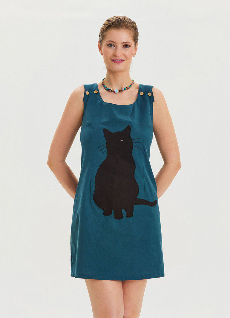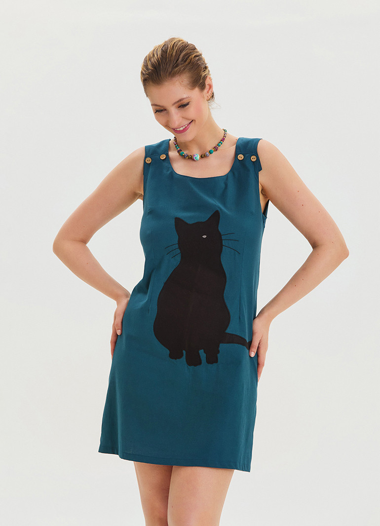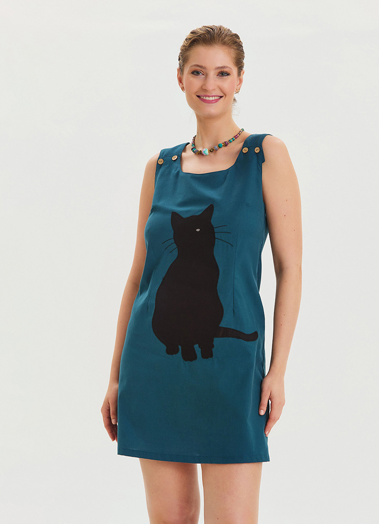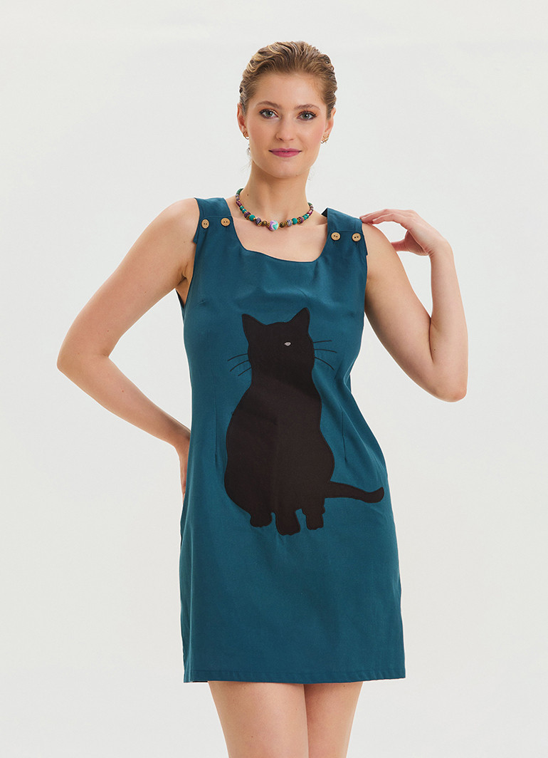 U Yaka Kedi Figürlü Düğme Detaylı Petrol Günlük Elbise 6822, şıklığı ve rahatlığı bir araya getiren eşsiz tasarımıyla gardırobunuzda fark yaratıyor.