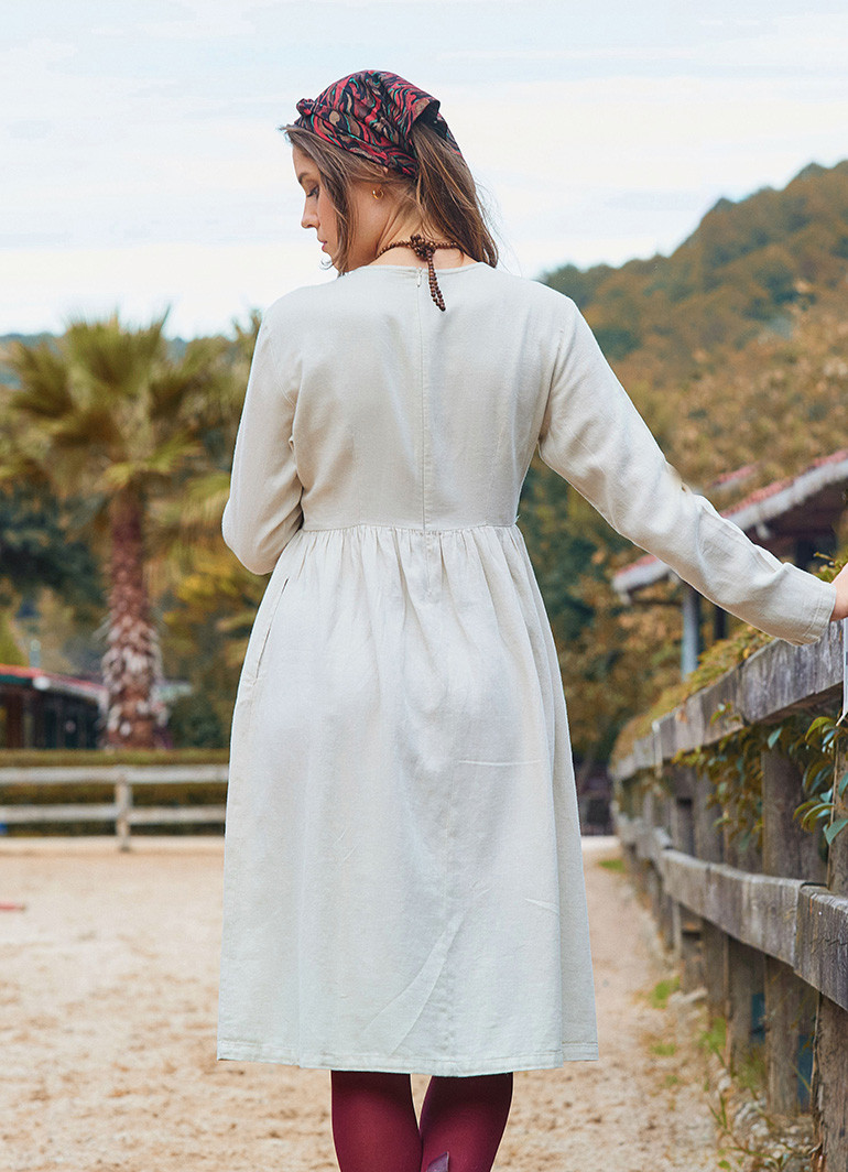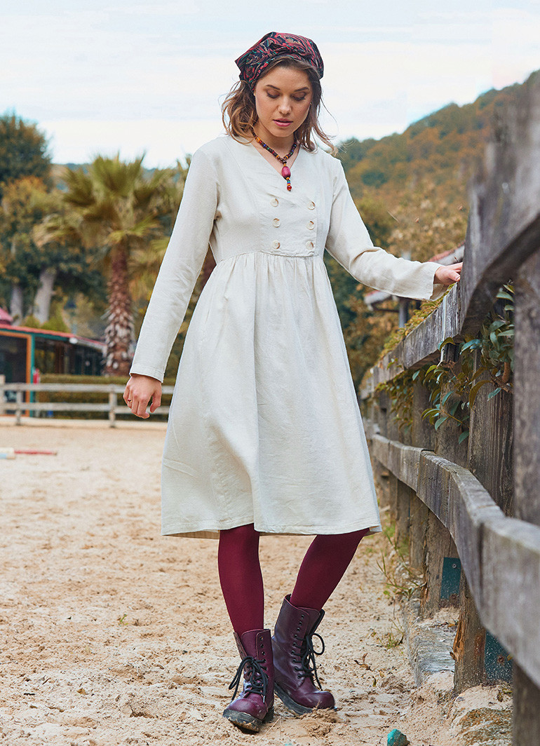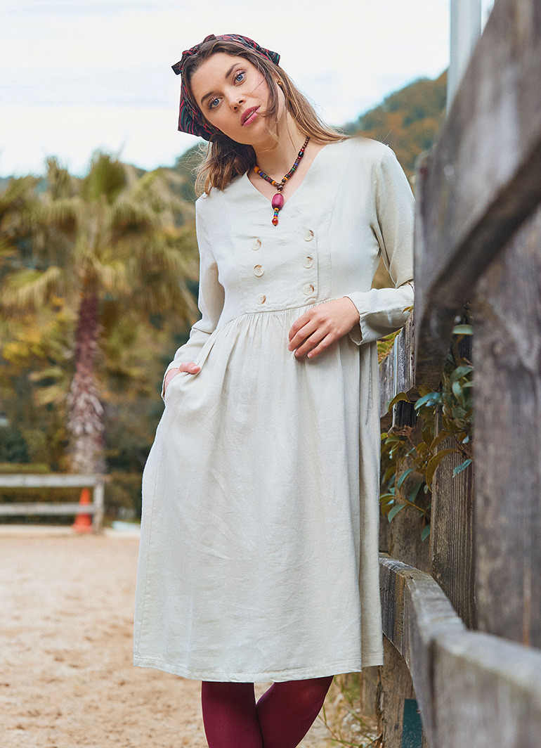 V Yaka Düğme Detaylı Fermuar Kapamalı Krem Kışlık Elbise, soğuk günlerde şıklığınızdan ödün vermemeniz için tasarlandı. Zarif krem rengi ve modern düğme detaylarıyla günlük ve özel davetler için ideal bir tercih sunar.