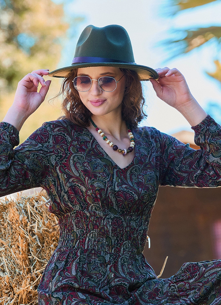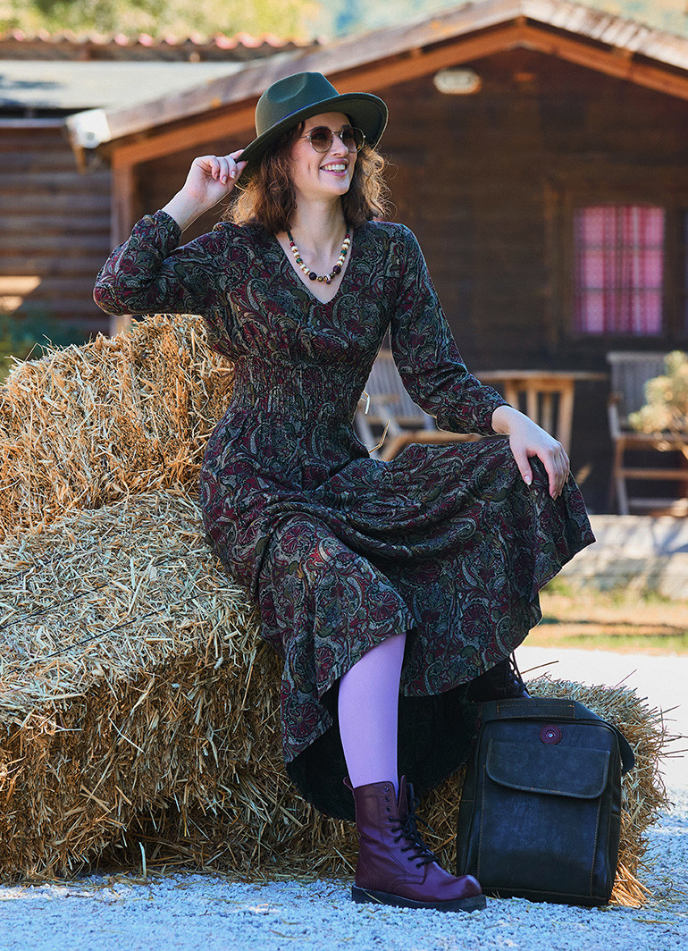 %100 dokuma viskon kumaştan üretilen bu elbise, hafif ve dökümlü yapısıyla gün boyu rahatlık sağlar. Doğal selüloz liflerinden elde edilen kumaş nefes alabilir, polyester içermediği için terletmez.