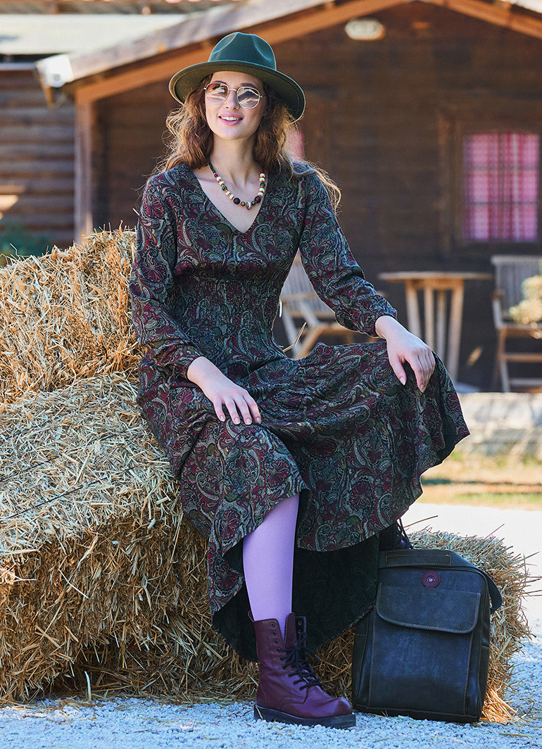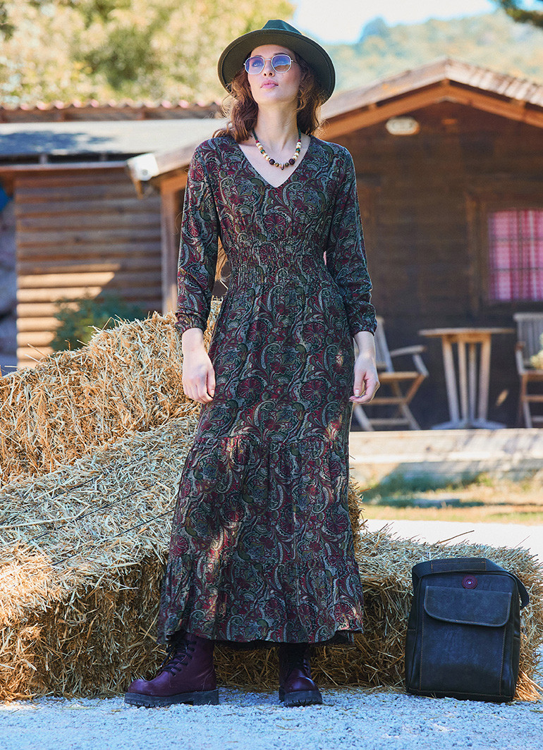 Türkiye’de üretilen kaliteli işçilikle hazırlanan V yaka volanlı elbiseyi gardırobunuza ekleyerek kış stilinizi güçlendirin.