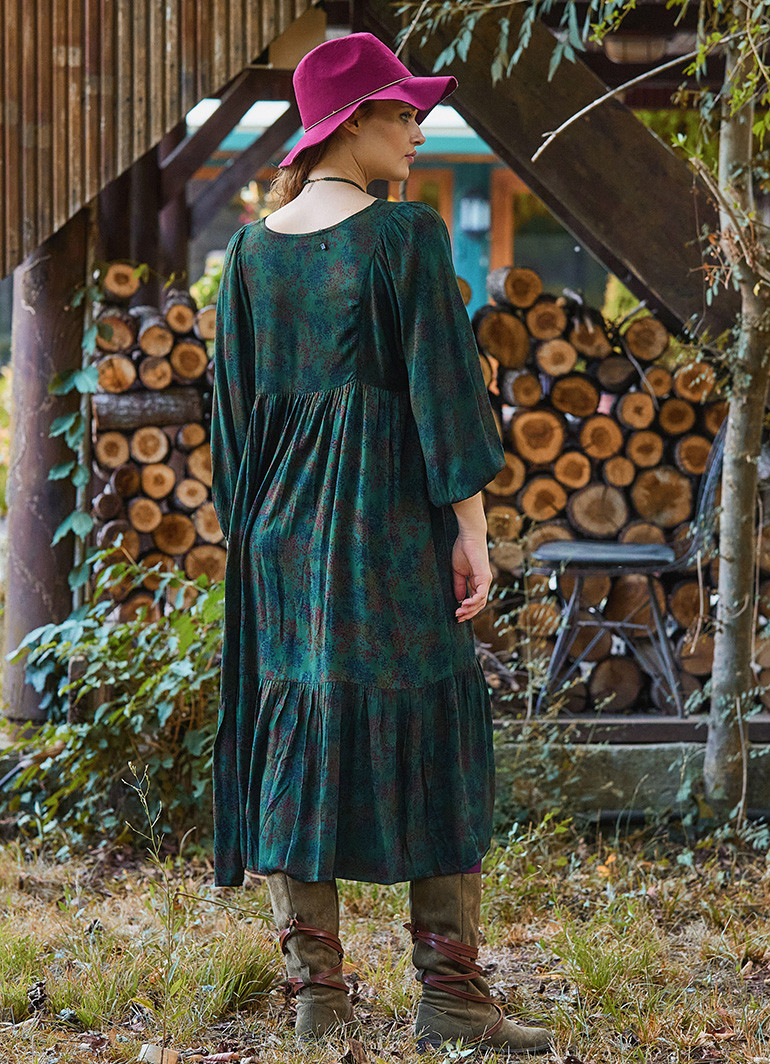 %100 dokuma viskon kumaştan üretilmiş olan elbise, polyester içermez ve nefes alabilir yapısıyla terletmez. Kayın ağacından elde edilen doğal selüloz ile dokunmuş bu kumaş, cildinizle uyumlu ve hafiftir.