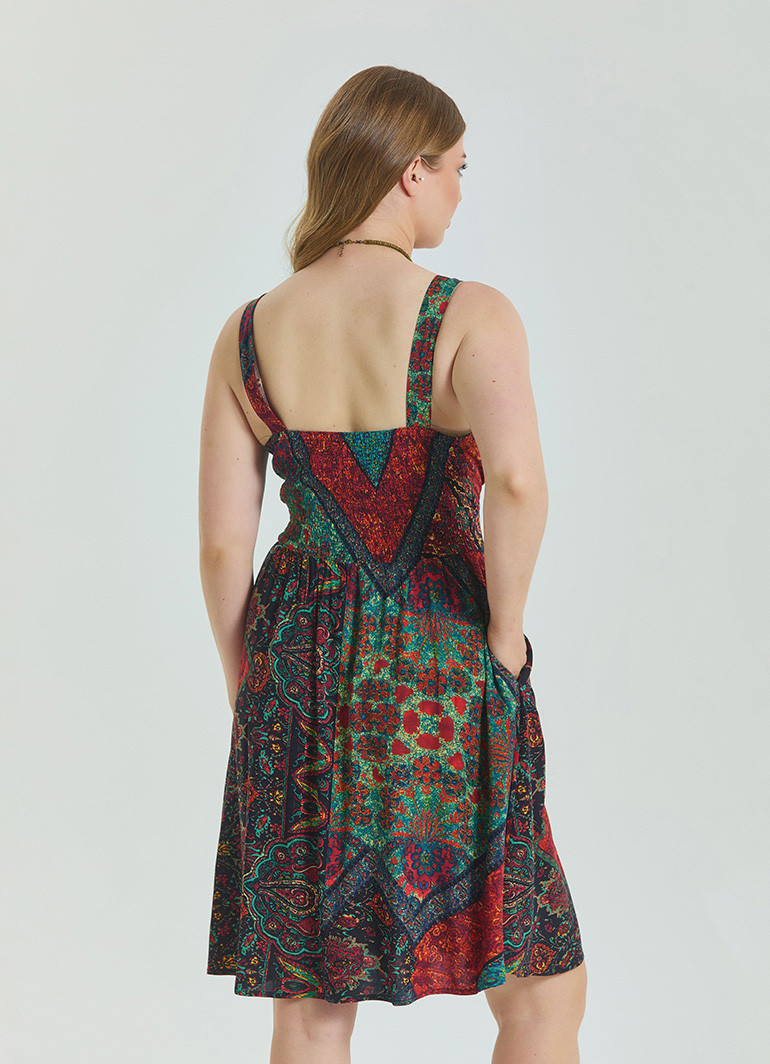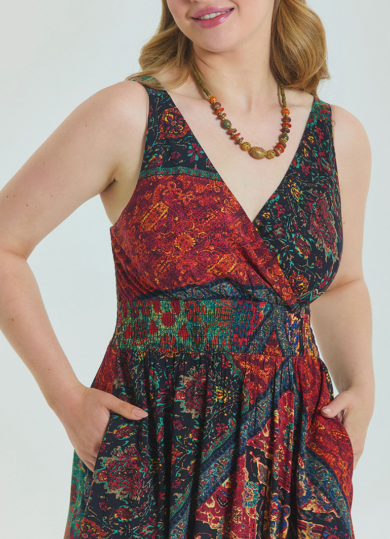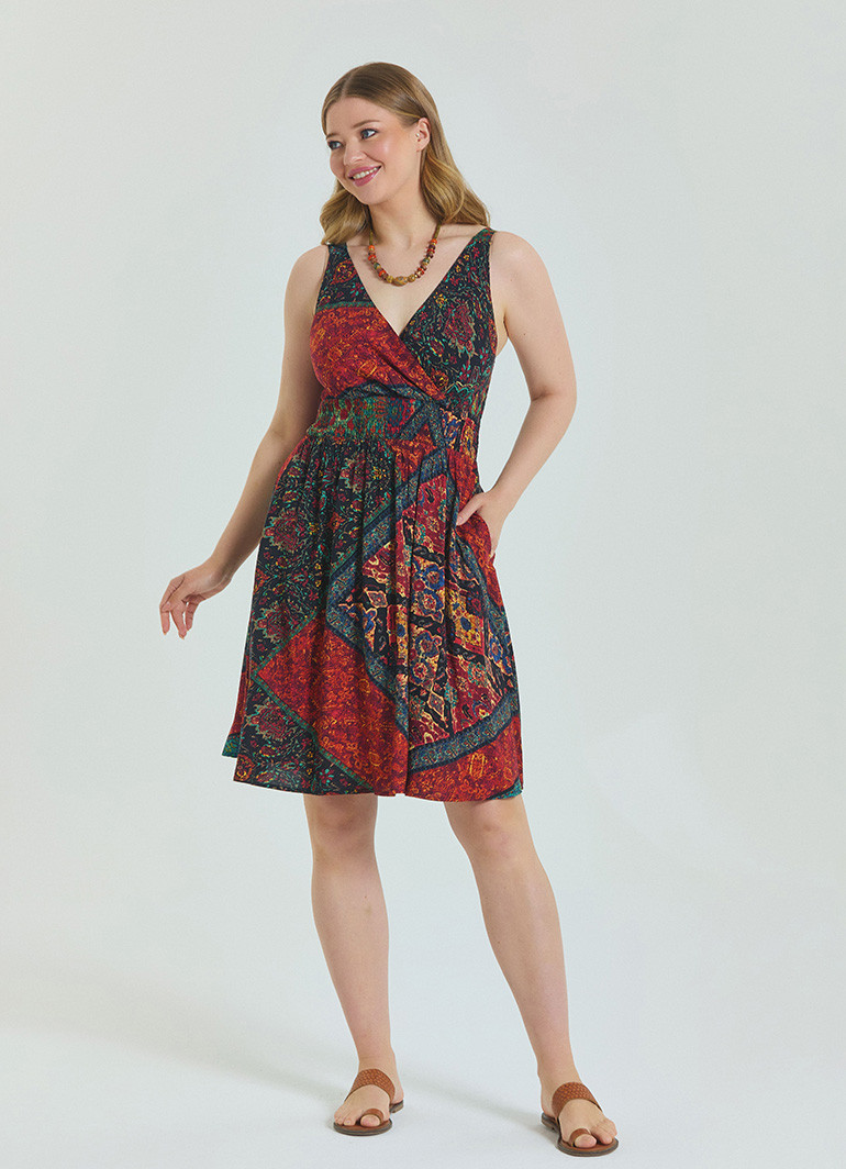 Yumuşak dokulu, %100 viskon kumaştan üretilmiş bu elbise, kayın ağacından elde edilen doğal selüloz lifleri sayesinde nefes alır ve cildi tahriş etmez. Polyester içermeyen yapısıyla terletmez, gün boyu rahatlık sunar.
