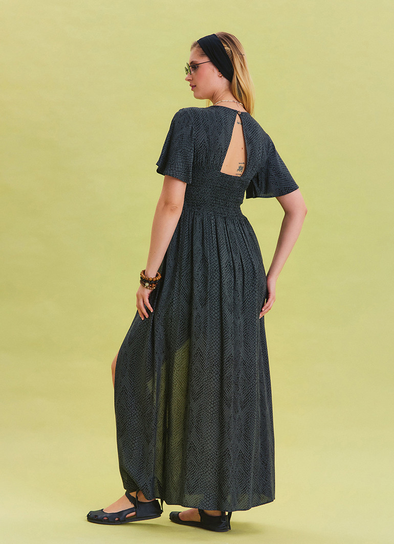 Manken Ölçüleri: Manken, üründe S beden tercih etmiştir (Ürün Boyu: 140 cm, Göğüs: 104 cm, Bel: 82 cm).
