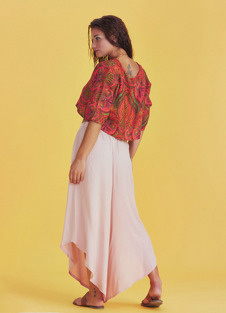 Kruvaze Ön Detay Beli Lastikli Salaş Kırmızı Pantolon 5040