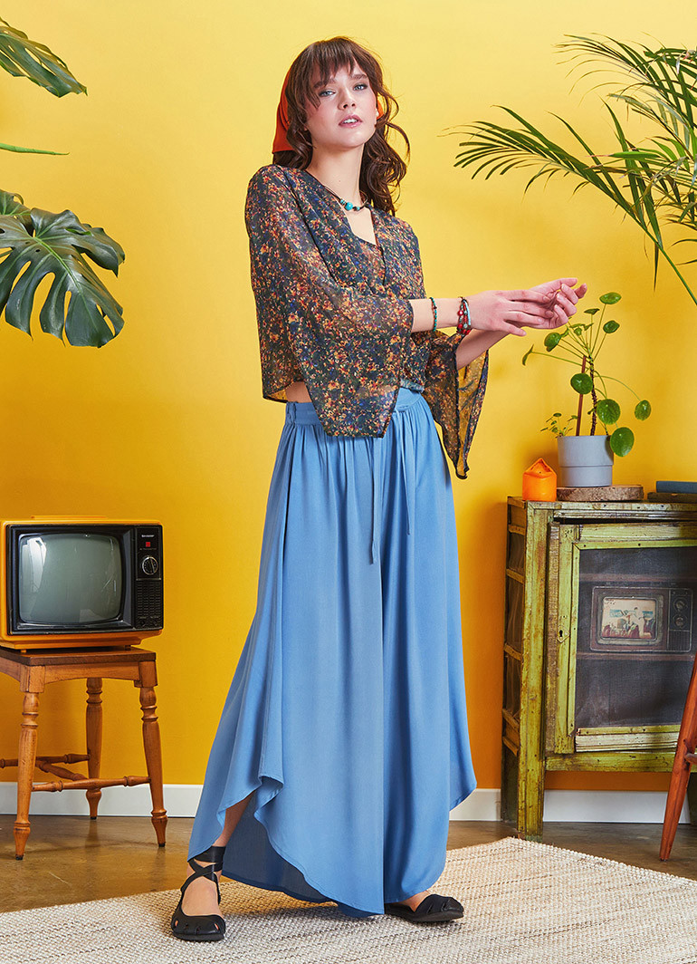 Beli Lastikli, Bağcıklı, Paça Detaylı, Bohem Stil, Bol Pantolon