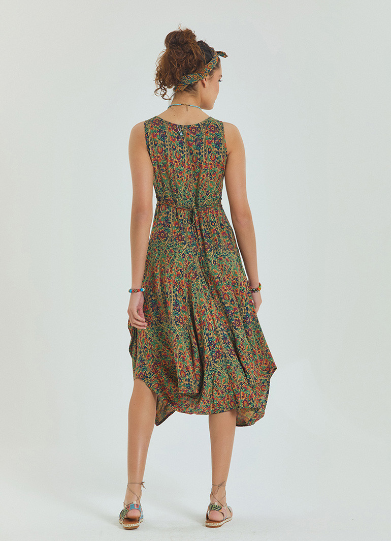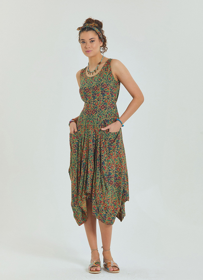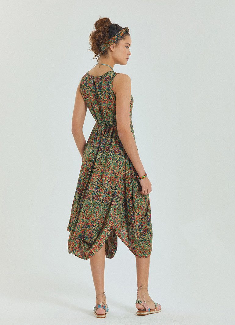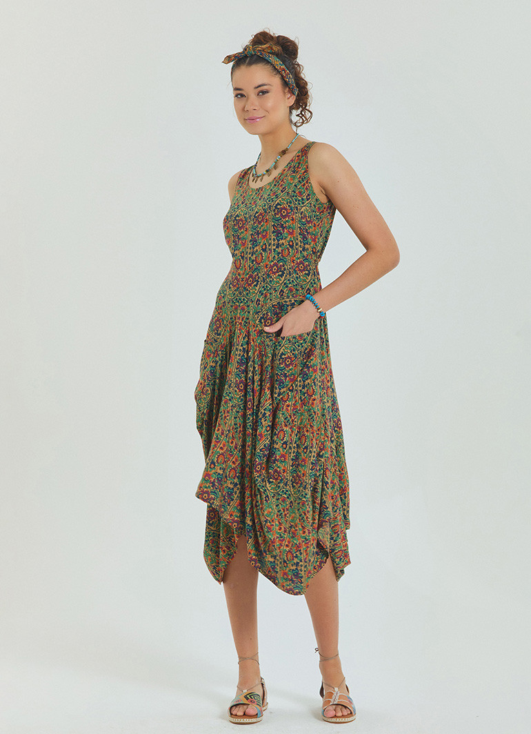 Asimetrik Etek Ucu ve Ön Cep Detaylı, Beli Bağcıklı, Kayık Yaka Elbise