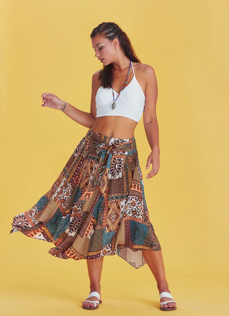 Midi boy kesimi ve dökümlü yapısıyla her adımda zarif bir silüet oluştururken, kombinlerinize bohem ve özgün bir hava katar. Gündelik stilinizde fark yaratmak ya da özel günlerde stilinizi öne çıkarmak için ideal bir tercih.