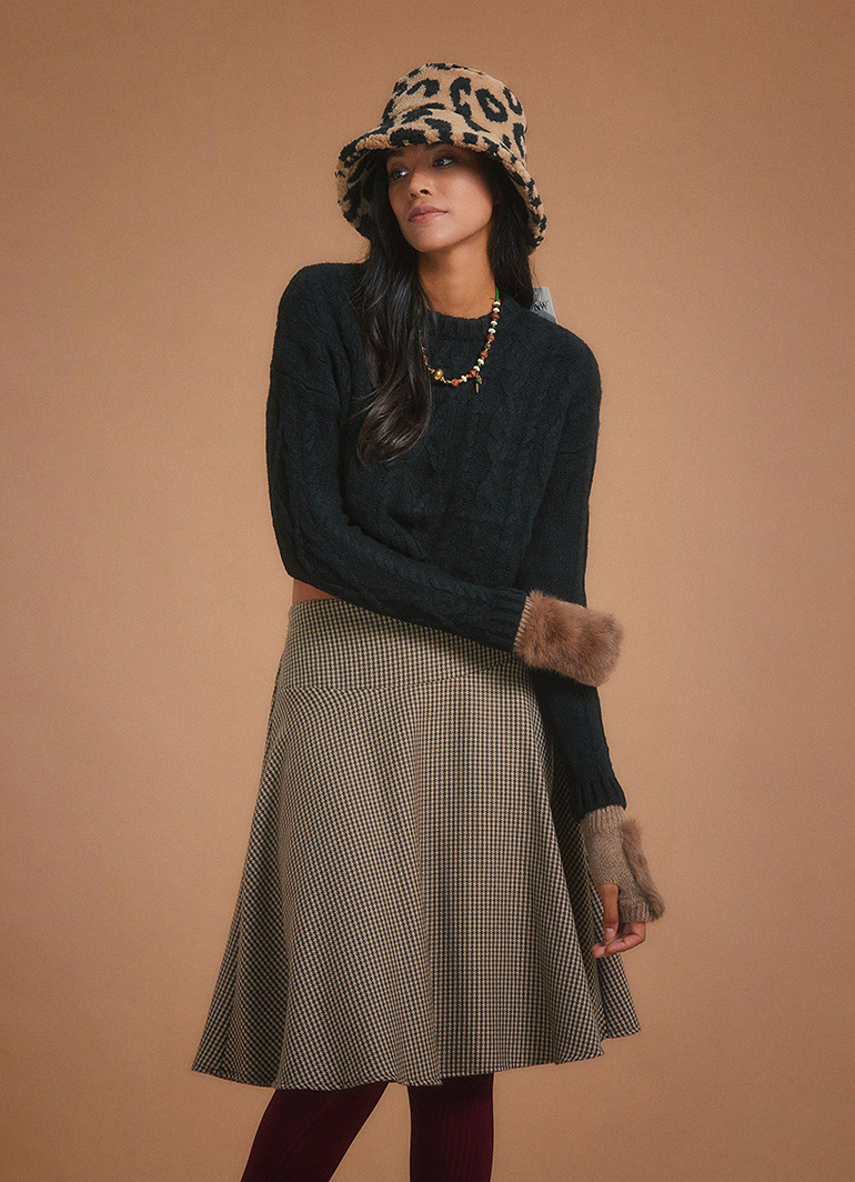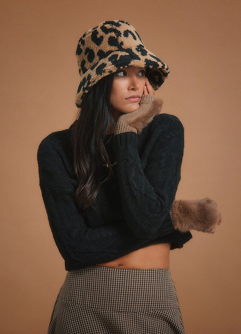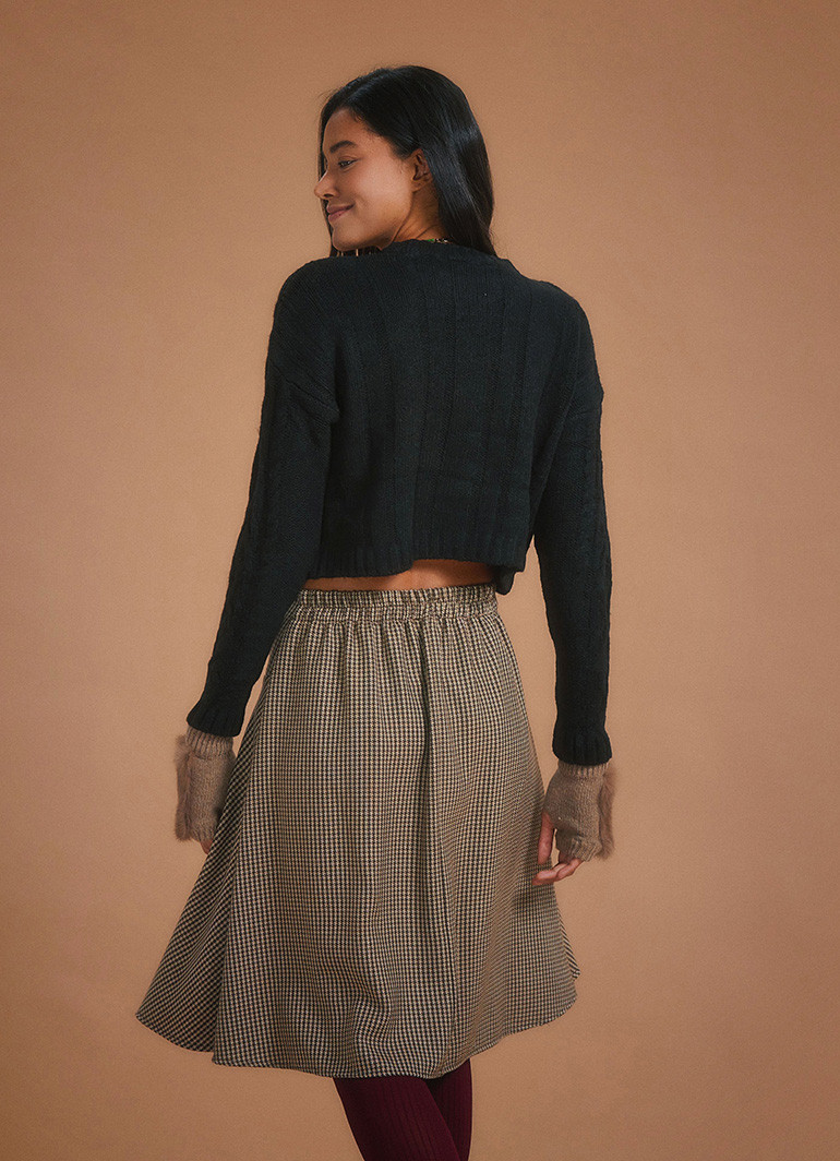 Bisiklet Yaka, Uzun Kollu, Saç Örgü, Crop Kazak