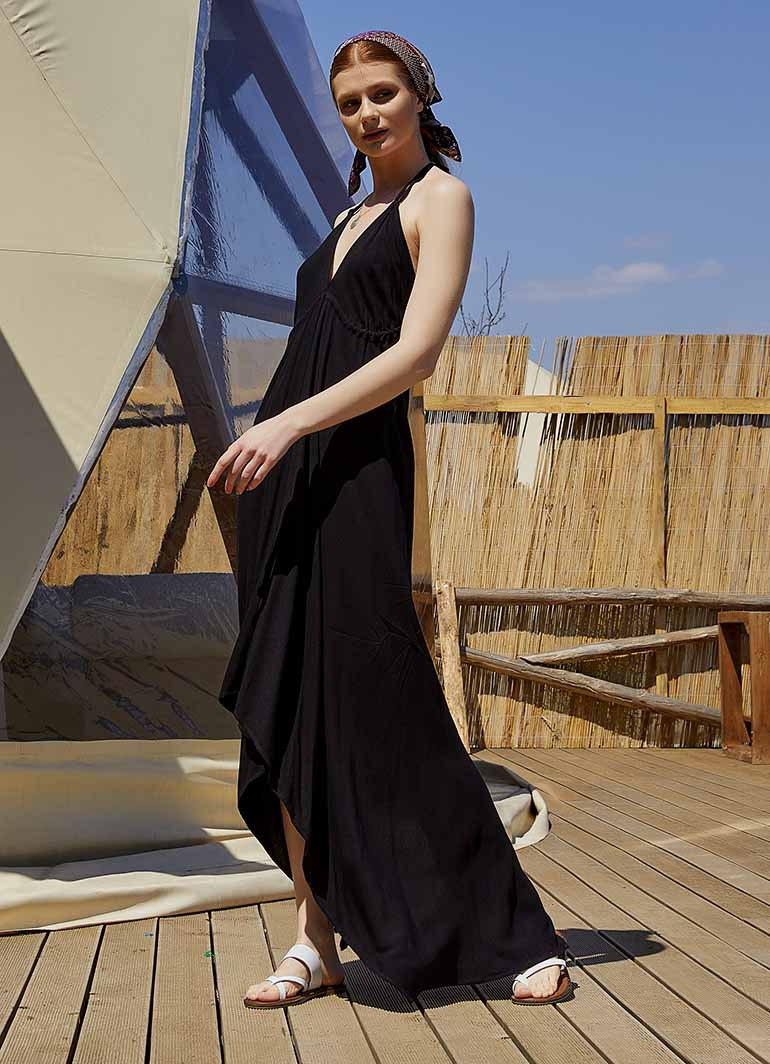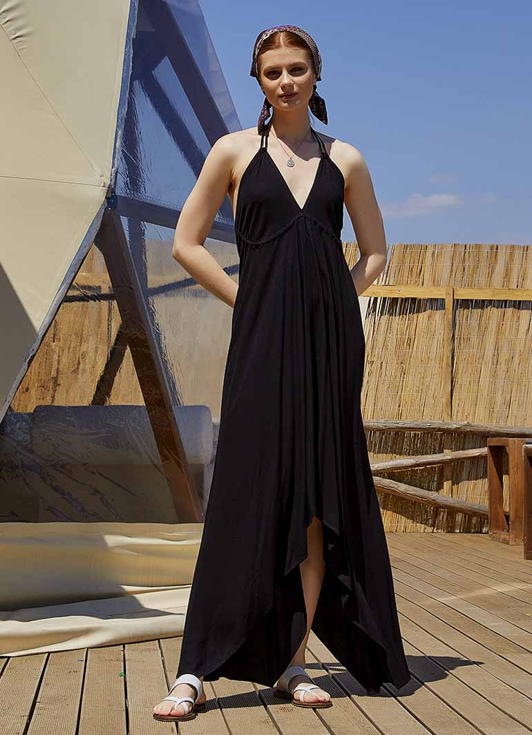 Sırtı Açık Siyah Elbise 4962