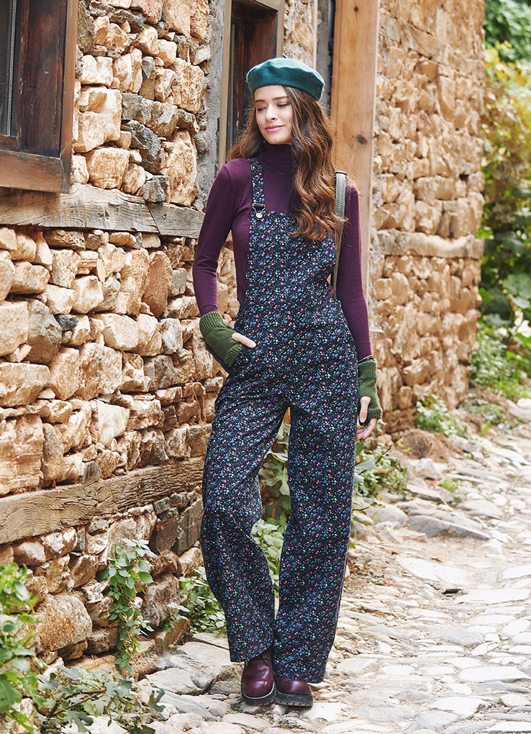 Retro Desen Bahçıvan Bol Paça Salopet Kadın Tulum 3261